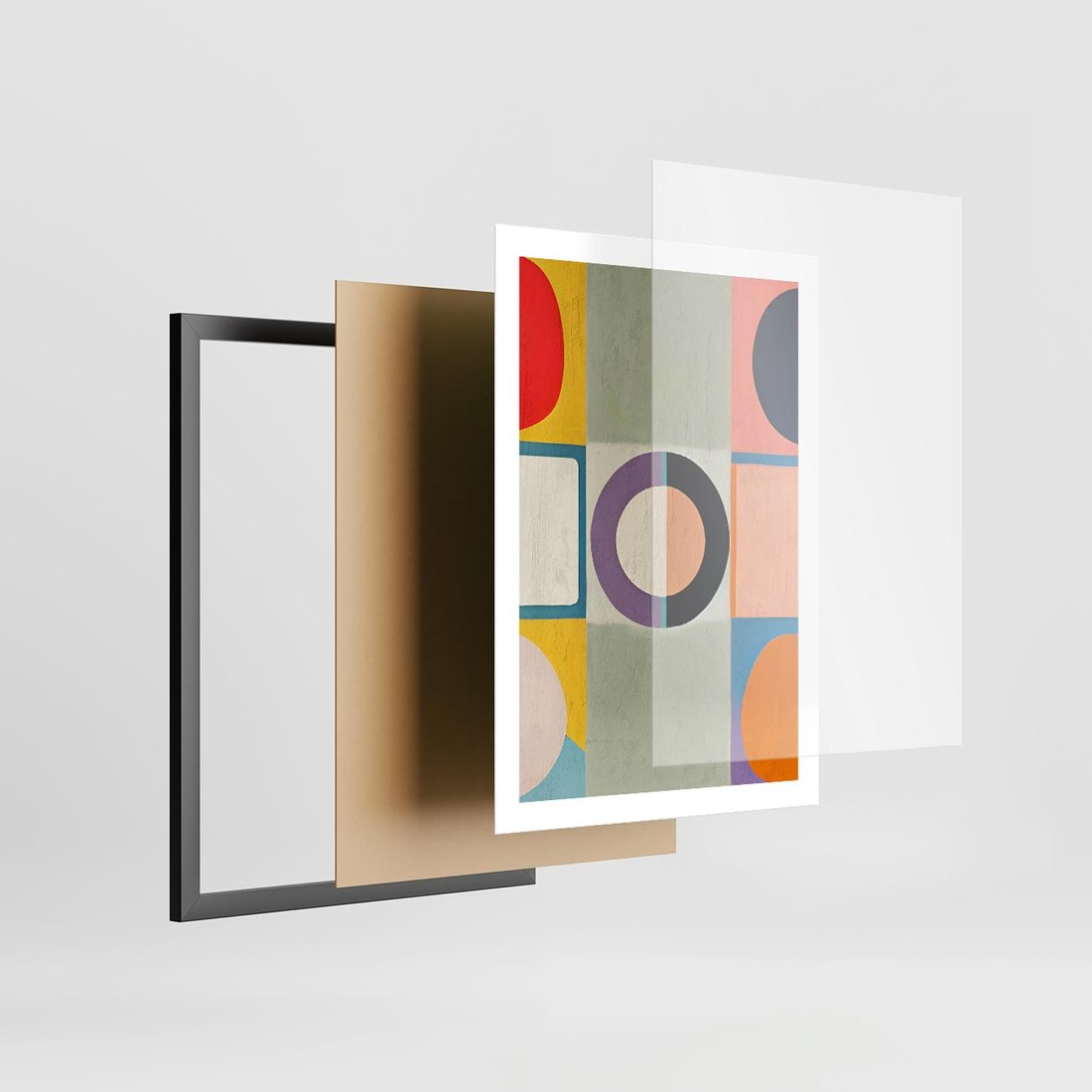 Plakat w ramie 50x70 - Taniec Kształtów Emocji - abstrakcyjne geometryczne kształty, olejny obraz - rama czarna