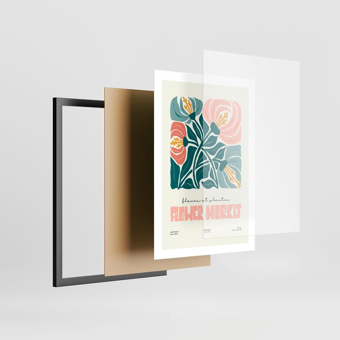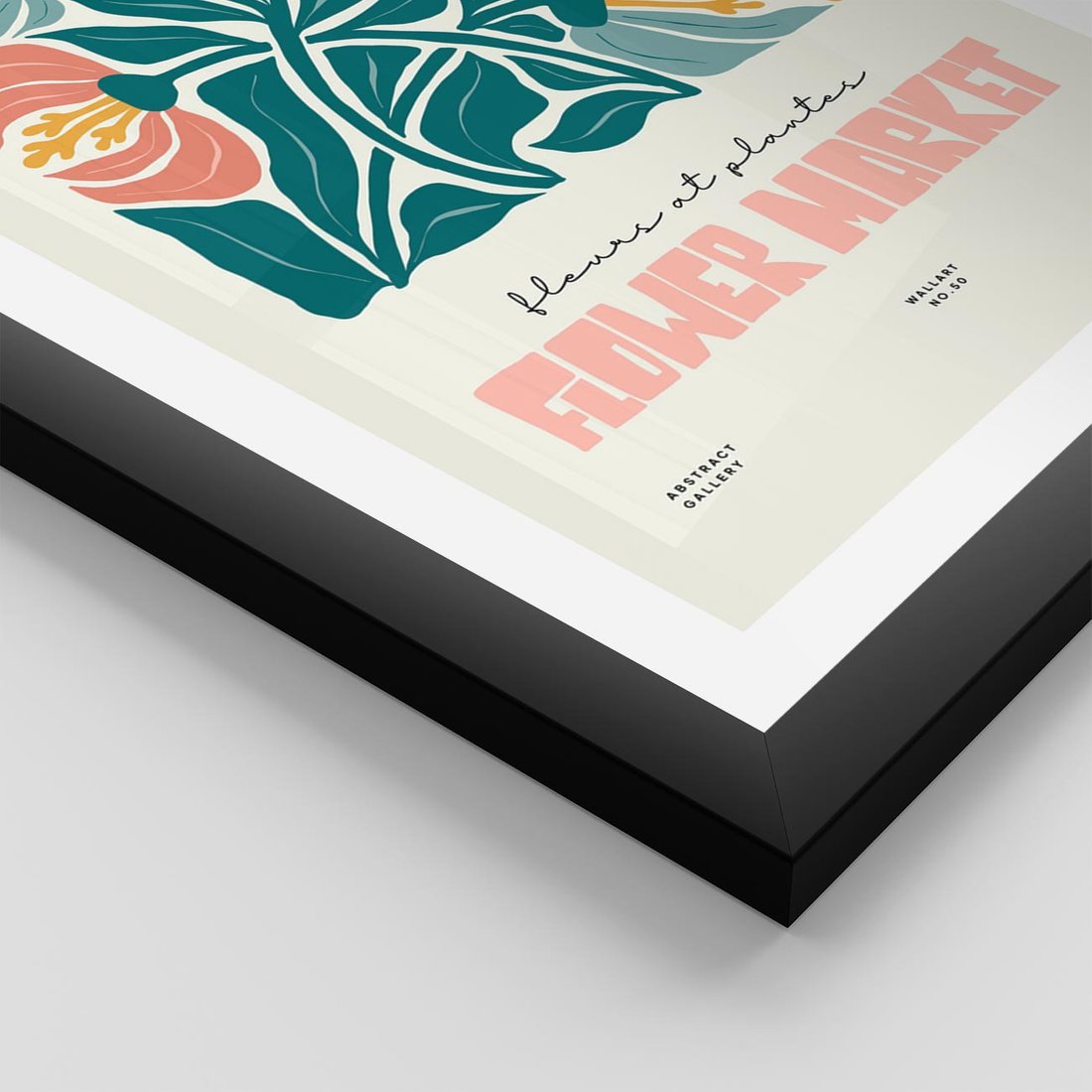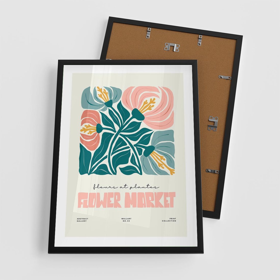 Plakat w ramie 50x70 - Taniec Kształtów - kwiaty, abstrakcyjna kompozycja - rama czarna
