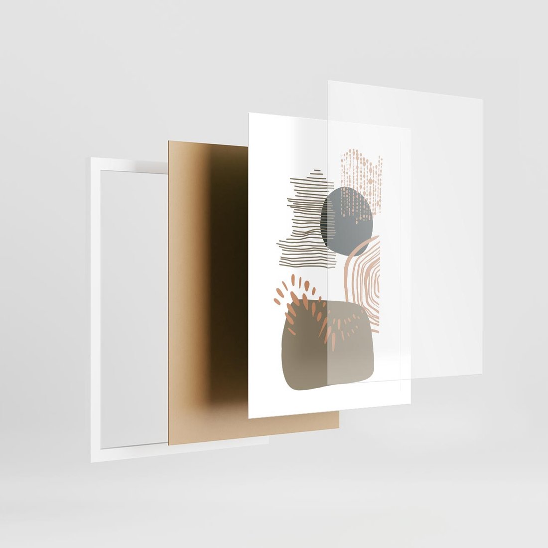 Ta abstrakcyjna kompozycja składa się z delikatnych kropek, kresek i kółek w spokojnych odcieniach brązu i beżu. Jej minimalistyczny charakter przynosi uczucie harmonii i spokoju, doskonale pasując do każdego wnętrza.