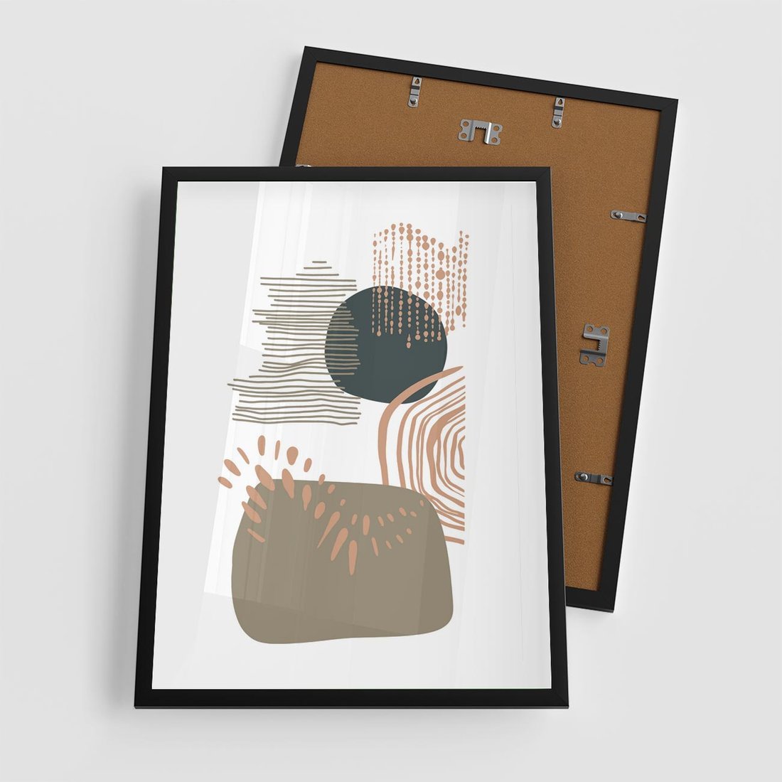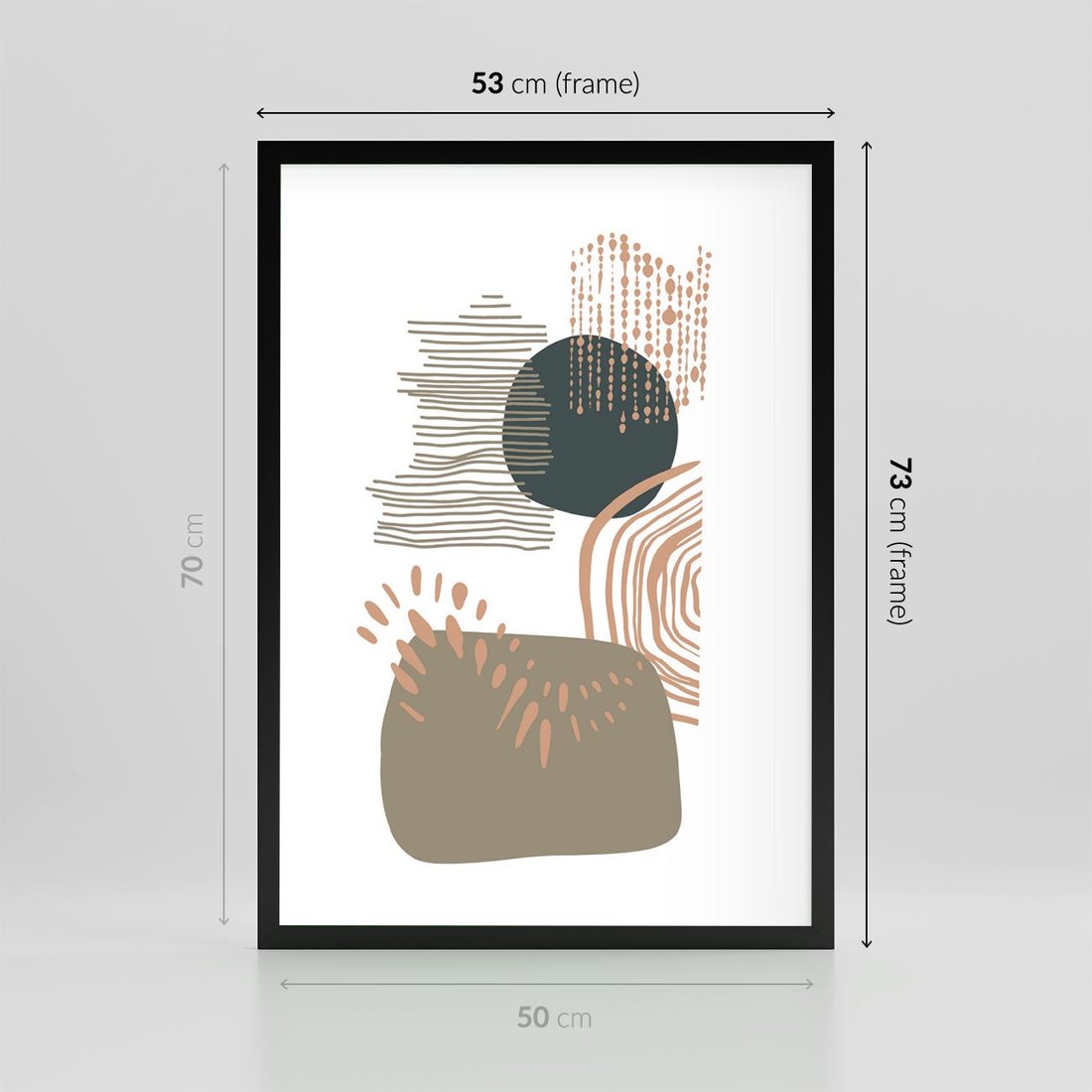 Ta abstrakcyjna kompozycja składa się z delikatnych kropek, kresek i kółek w spokojnych odcieniach brązu i beżu. Jej minimalistyczny charakter przynosi uczucie harmonii i spokoju, doskonale pasując do każdego wnętrza.
