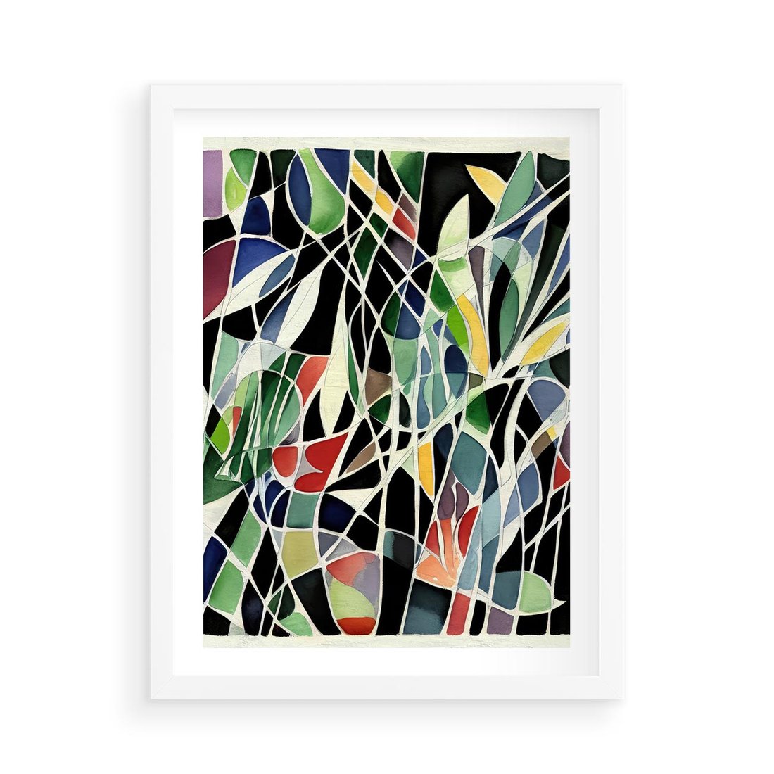 Plakat w ramie 50x70 - Taniec Plam i Kształtów - abstrakcyjny akwarelowy obraz, plamy - rama biała