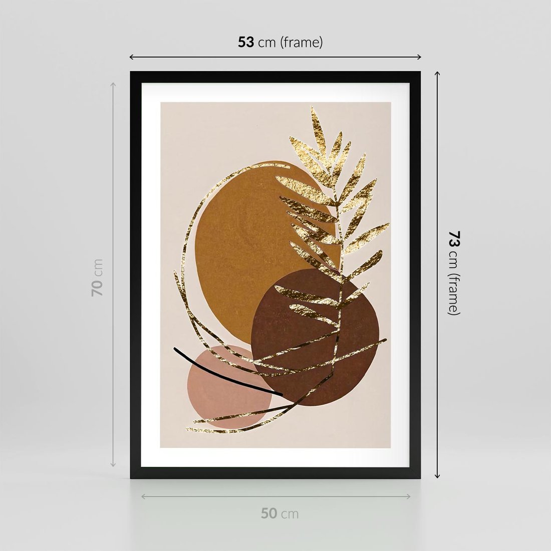Plakat w ramie 50x70 - Taniec Przenikających Odbić - abstrakcyjny obraz, złote liście palmy - rama czarna