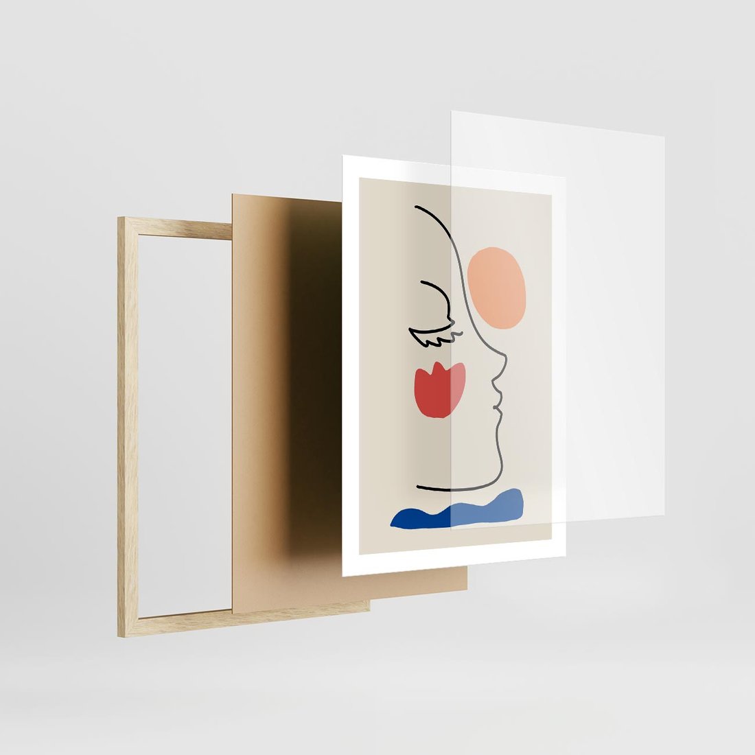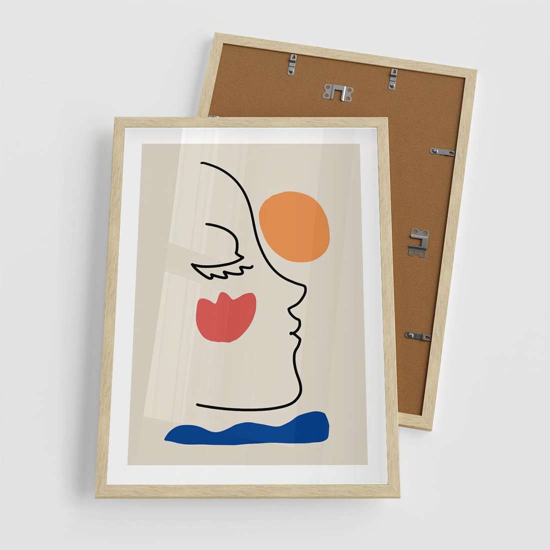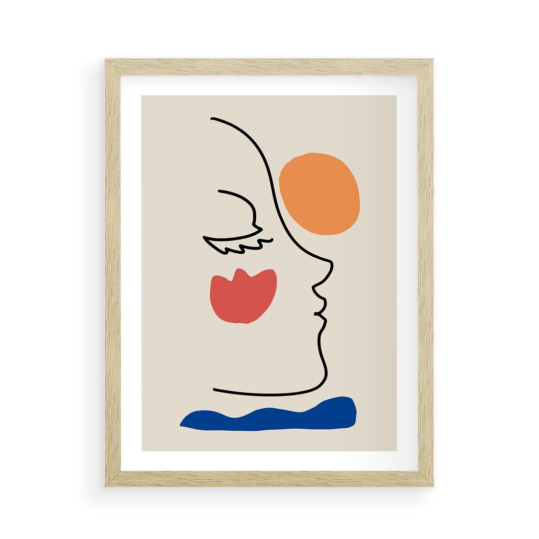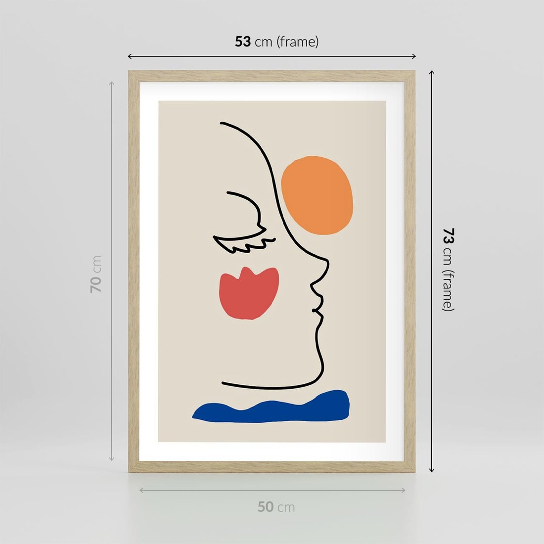 Plakat w ramie 50x70 - Taniec Przenikających Plam - abstrakcyjny obraz, przypomina twarz - rama drewno