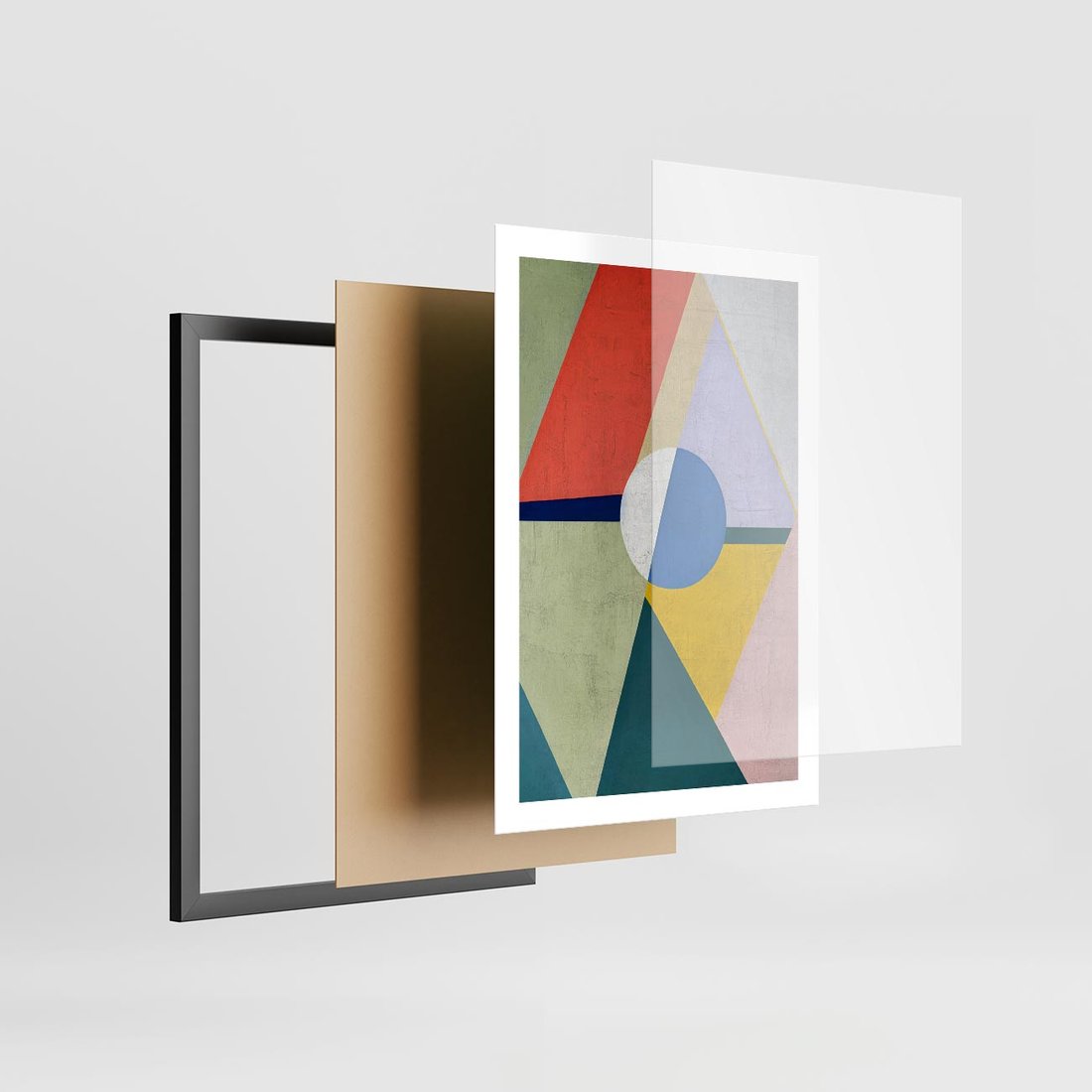 Plakat w ramie 50x70 - Taniec Subtelnych Odbić - abstrakcyjne geometryczne kształty, olejny obraz - rama czarna