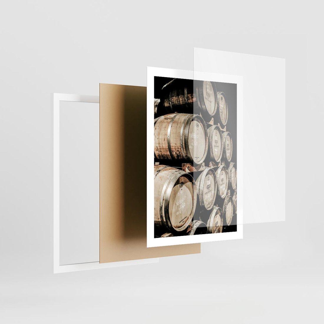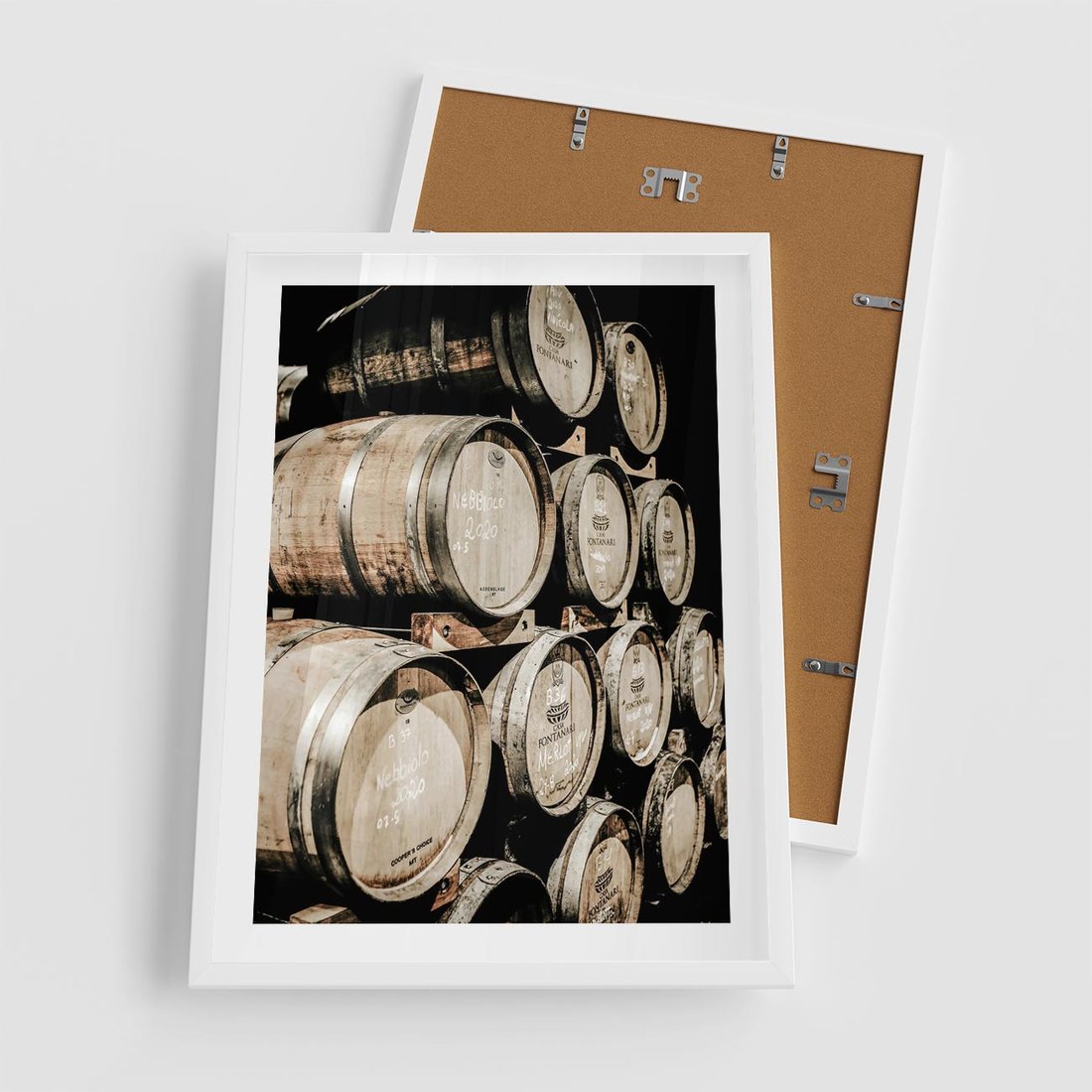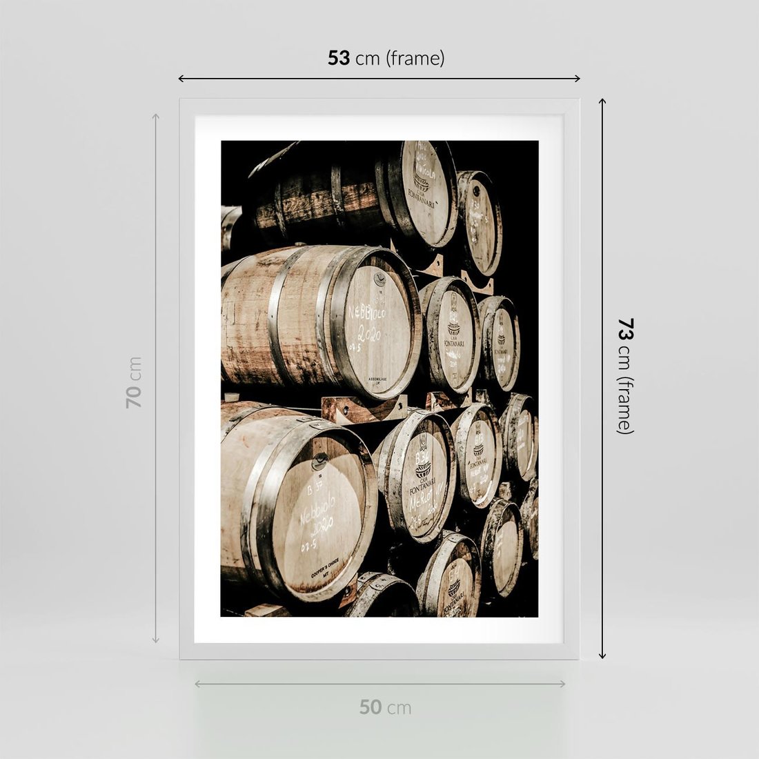 Plakat w ramie 50x70 - Tradycyjne Beczki - beczki, rustykalna fotografia - rama biała