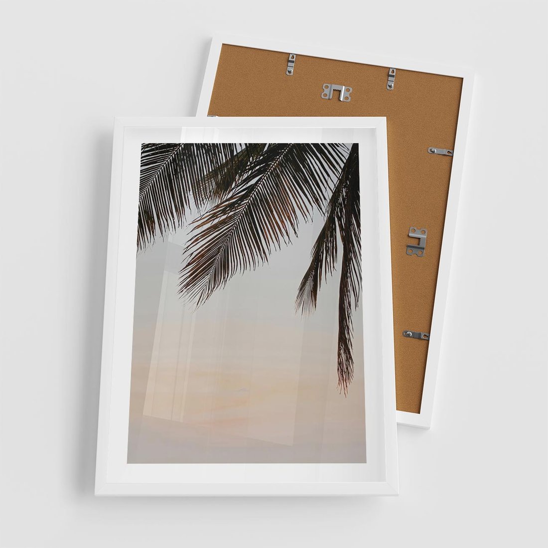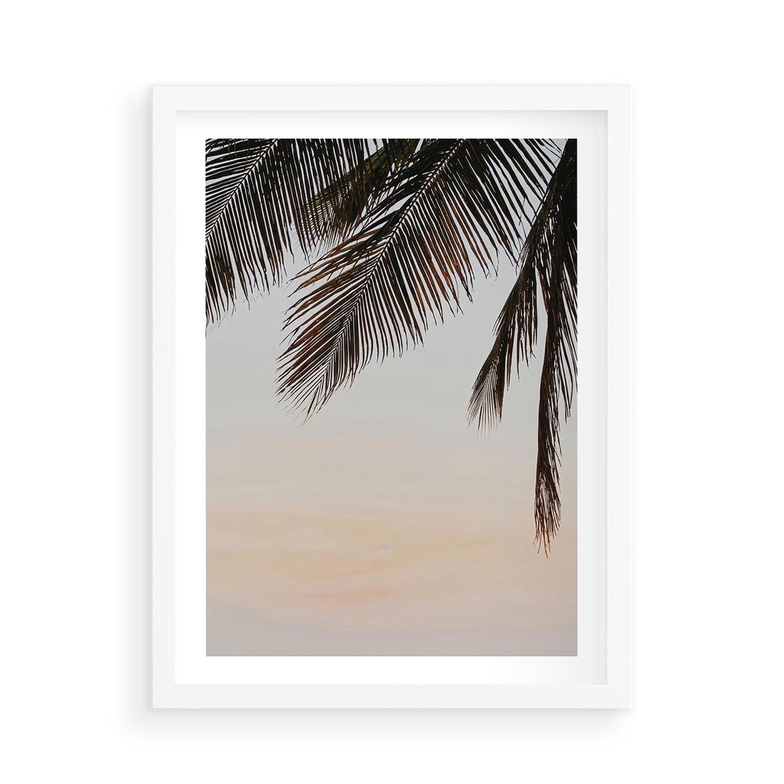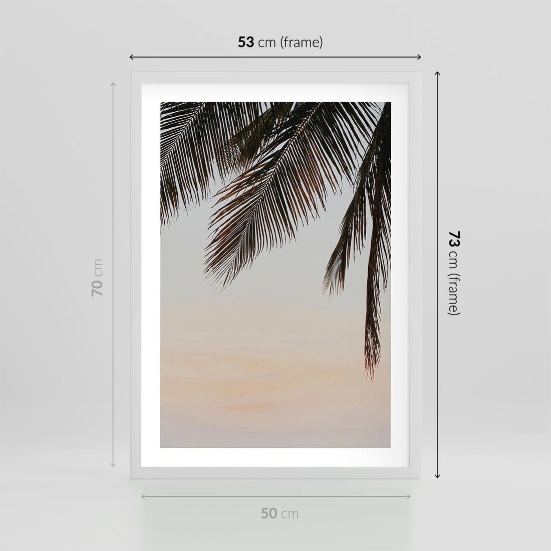Plakat w ramie 50x70 - Tropikalna Harmonia - palmy na tle nieba - rama biała