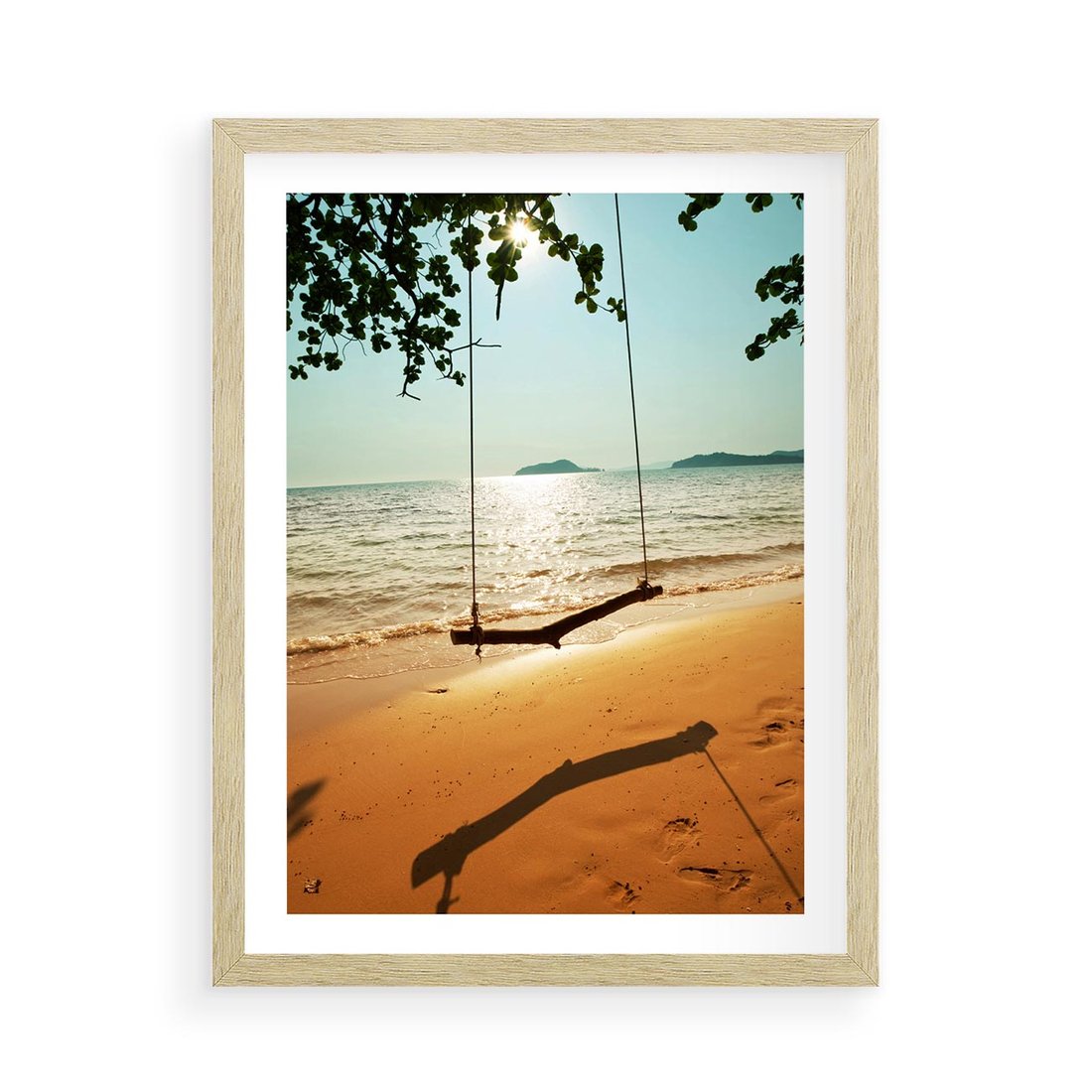 - Plakat w ramie 50x70 - Tropikalna plaża i huśtawka