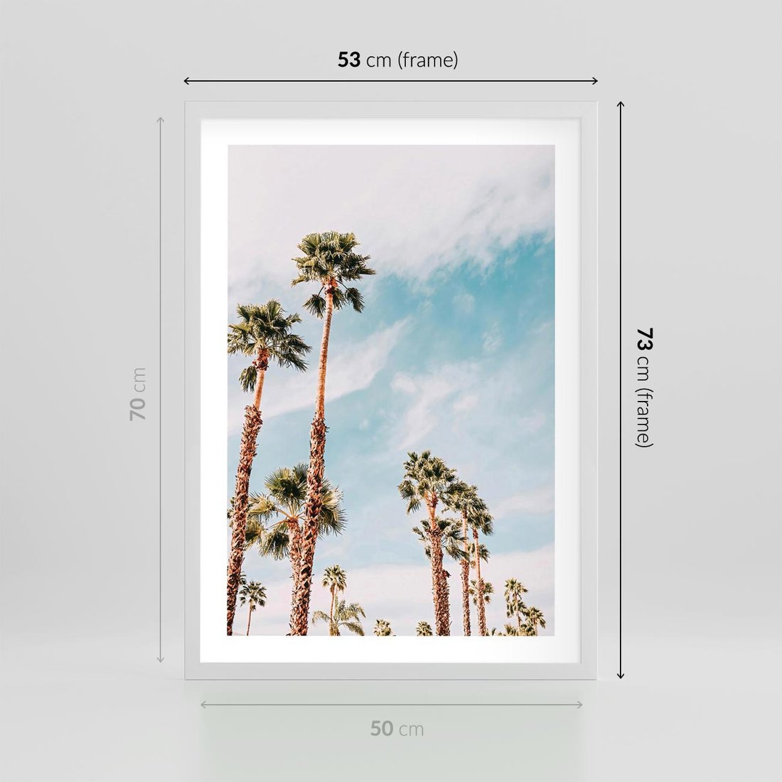 - Plakat w ramie 50x70 - Tropikalna Sielskość: Palmy i Błękitne Niebo