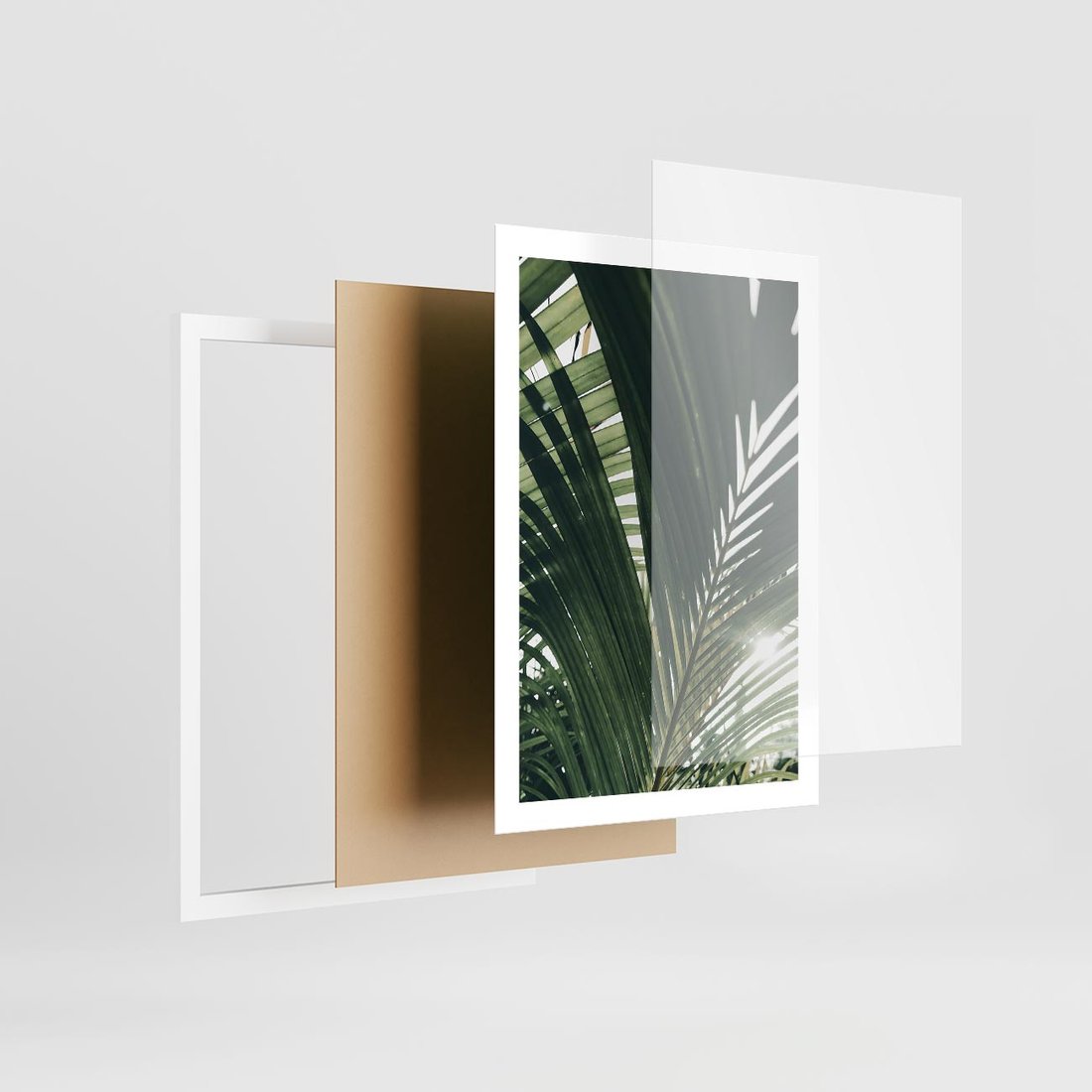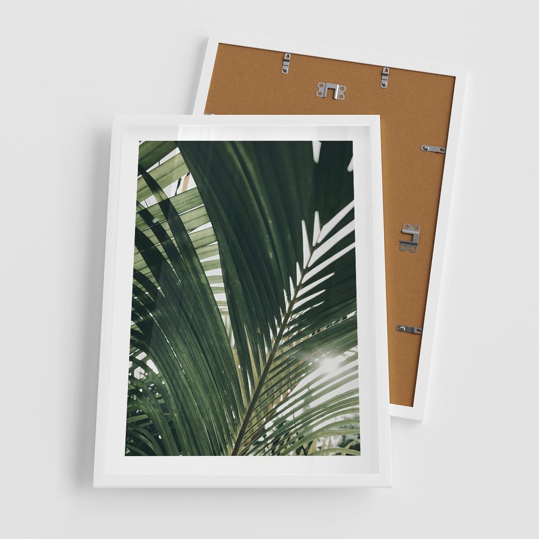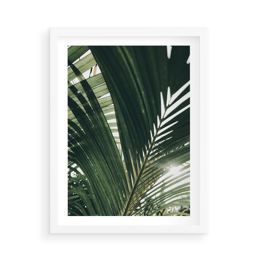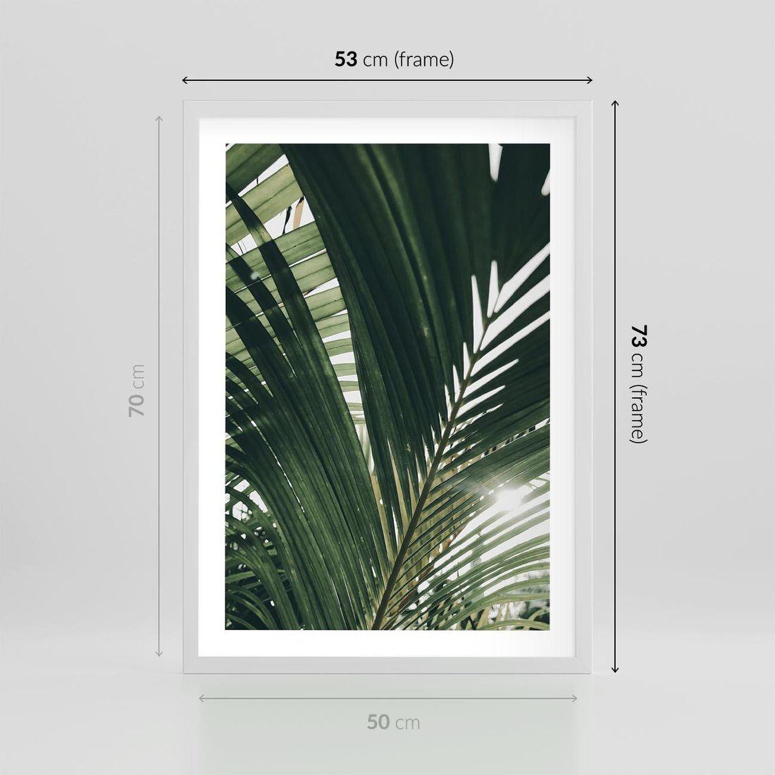 Plakat w ramie 50x70 - Tropikalne Uroki: Palmy i Zielone Liście - palmy, zielone liście - rama biała