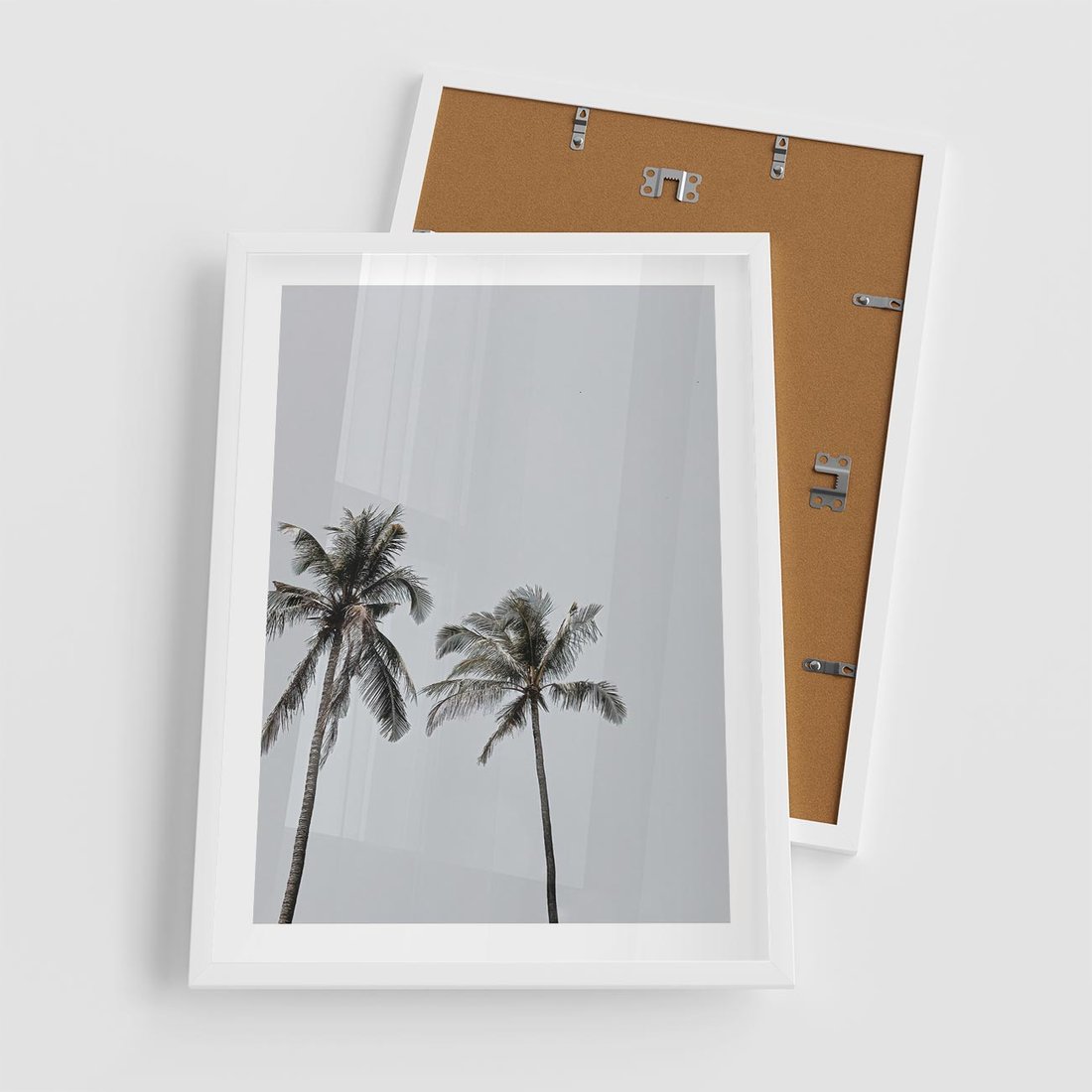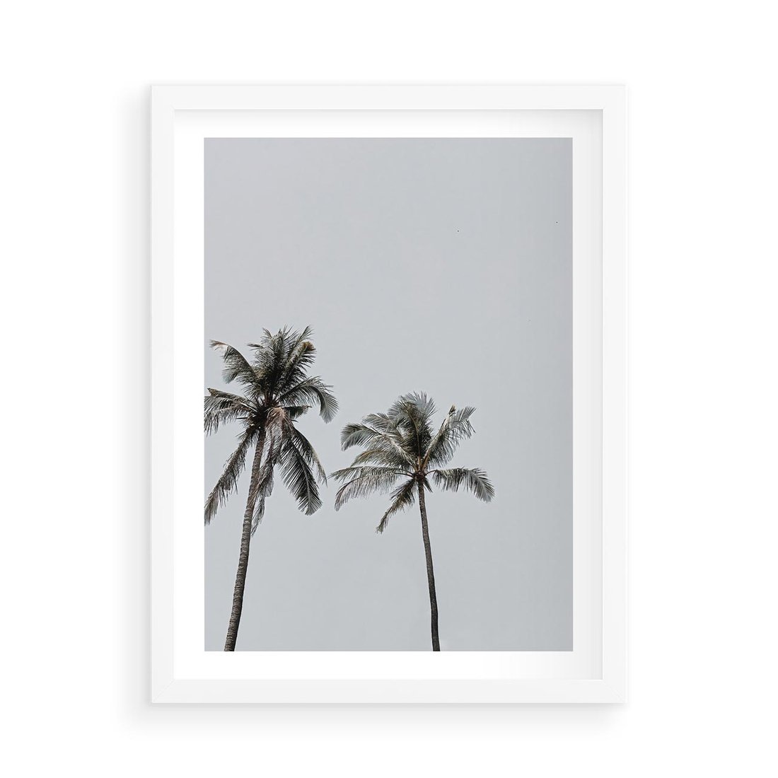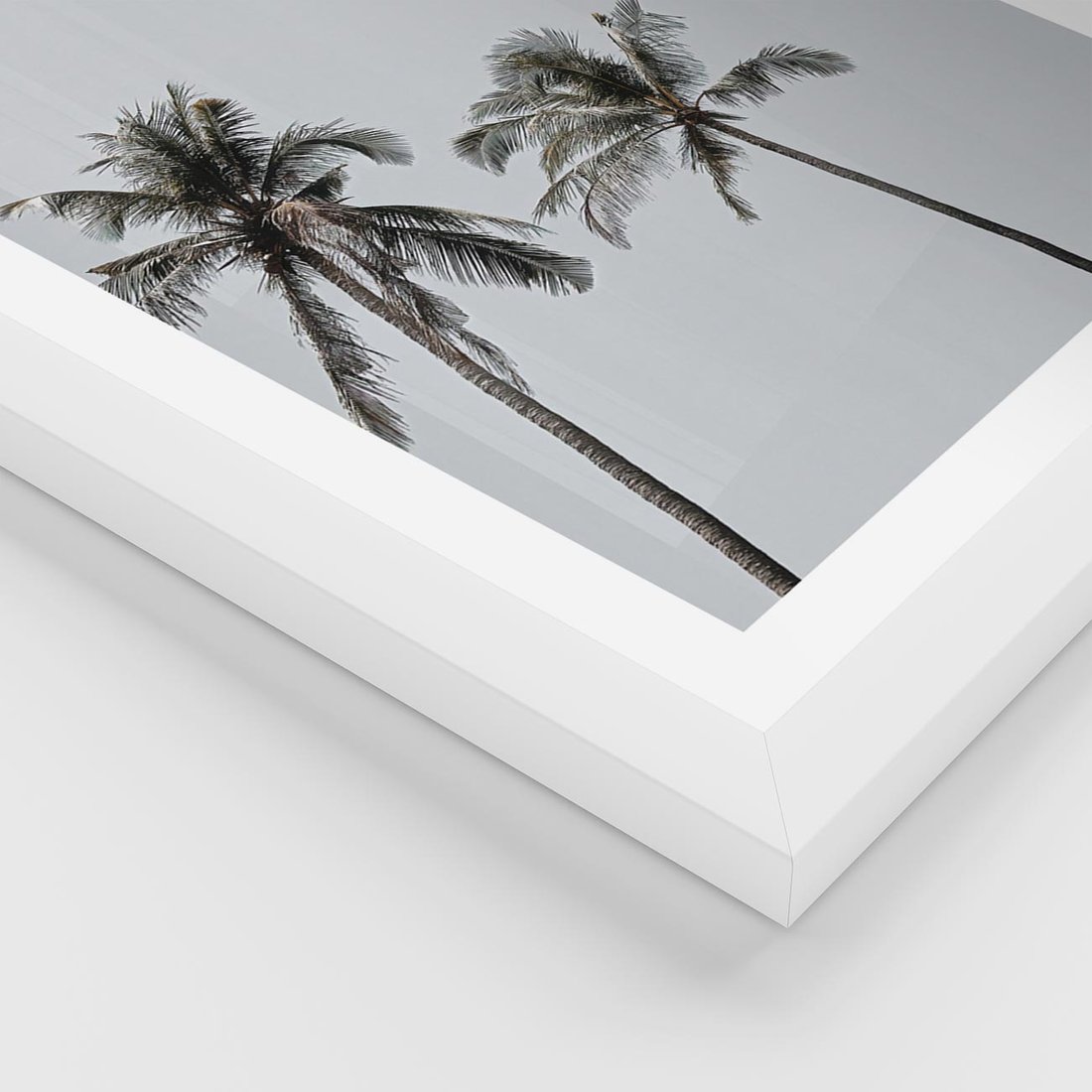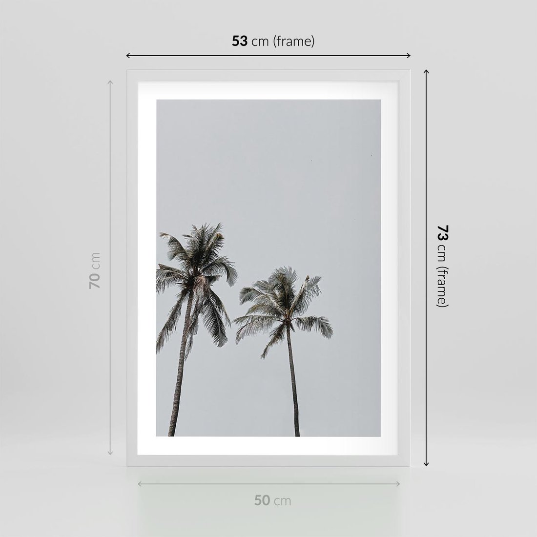 Plakat w ramie 50x70 - Tropikalny Raj: Palmy i Niebo - palmy, niebo - rama biała