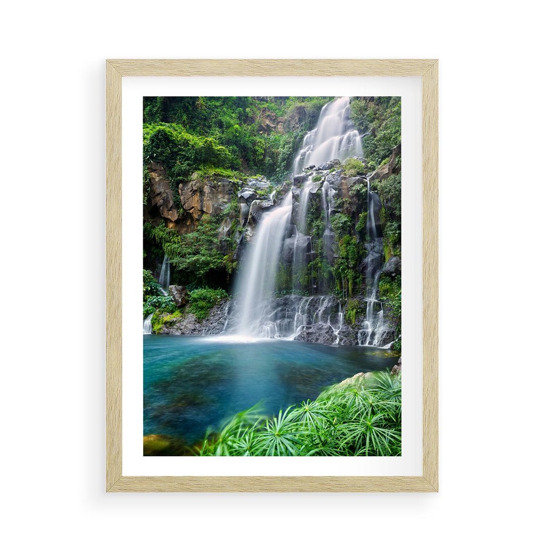 Plakat w ramie 50x70 - Tropikalny Wodospad - wodospad, tropikalny - rama drewno