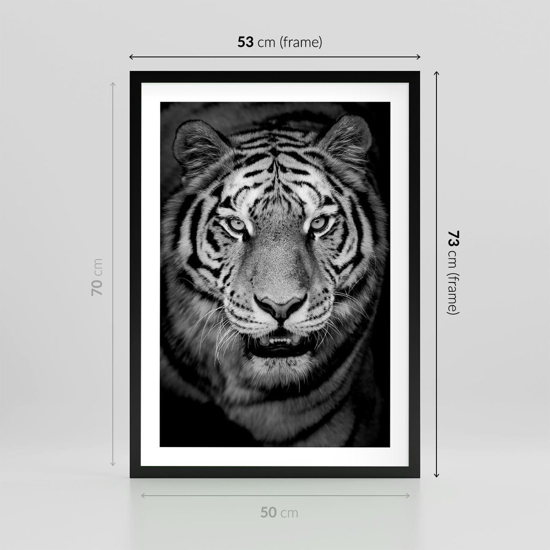 - Plakat w ramie 50x70 - Tygrys Czarno-Biały: Siła i Delikatność