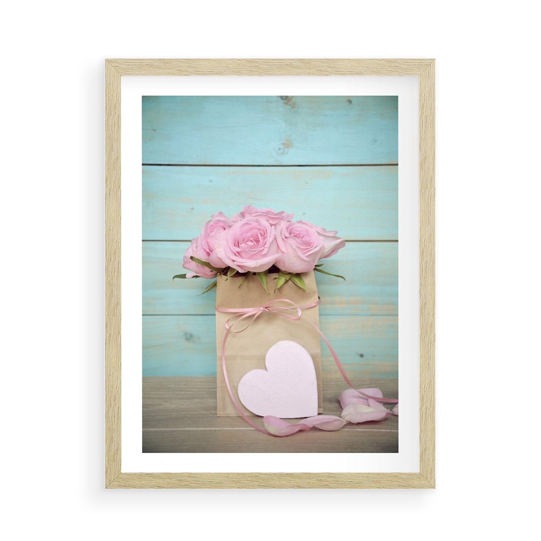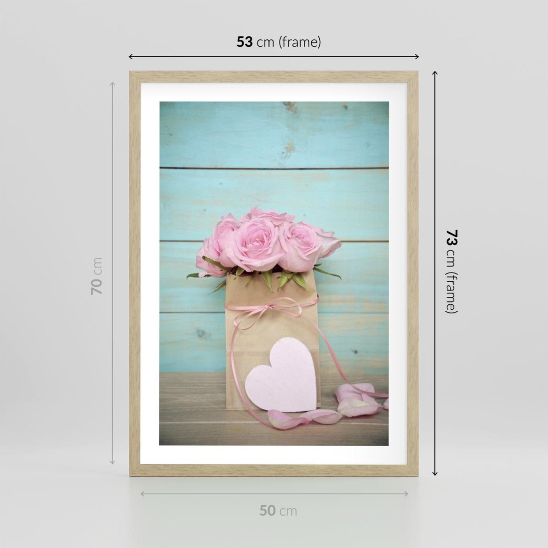Plakat w ramie 50x70 - Uczucie W Pełnym Rozkwicie - kwiaty, romantyczne - rama drewno