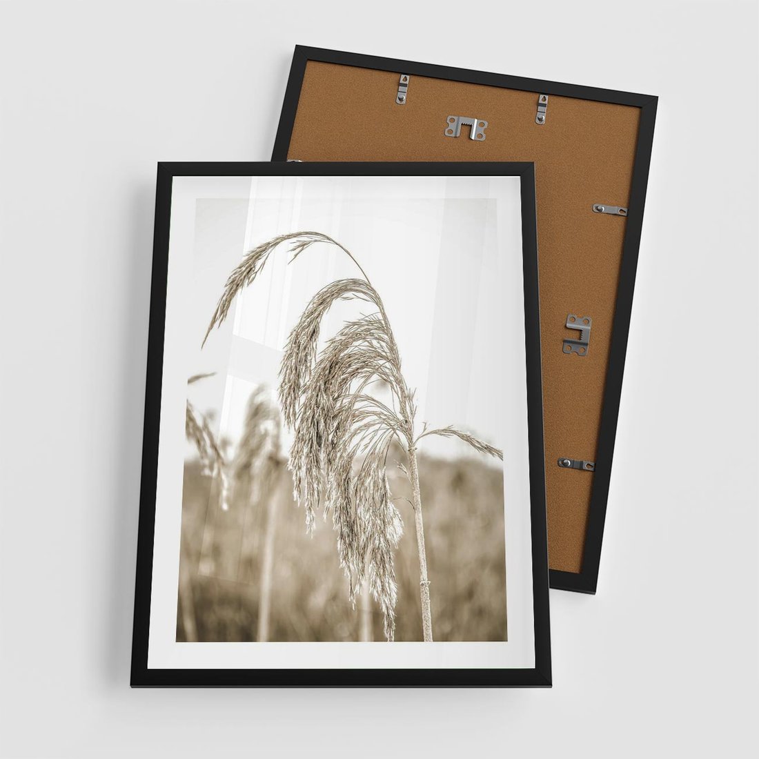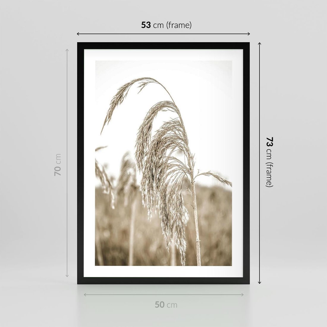 Plakat w ramie 50x70 - Ujęcie Suchych Traw - suche trawy, zbliżenie - rama czarna
