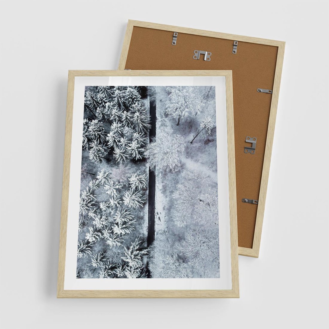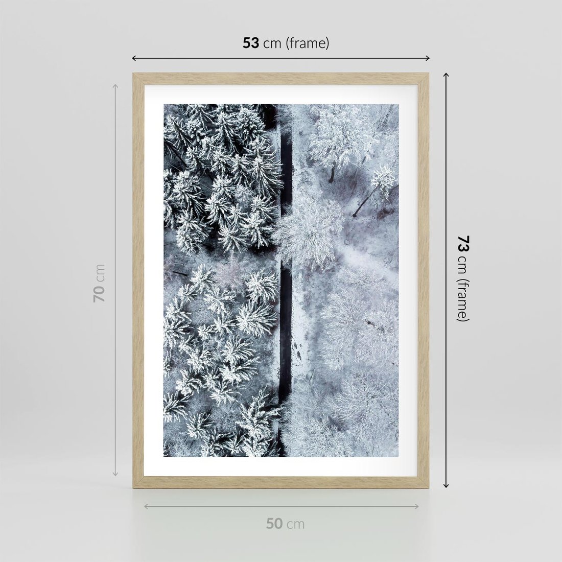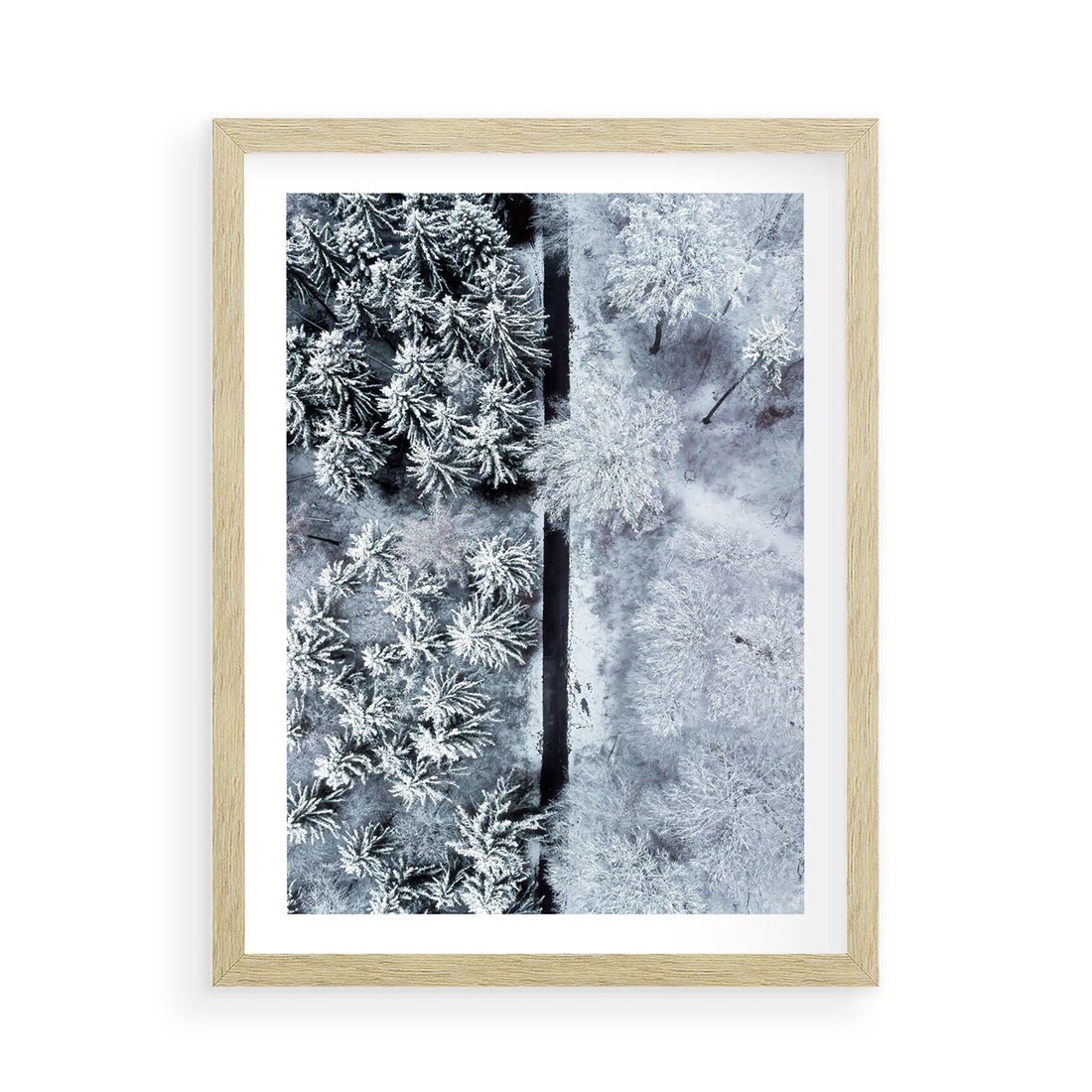 Plakat w ramie 50x70 - Ujęcie Zimowej Szosy - zima, śnieg - rama drewno