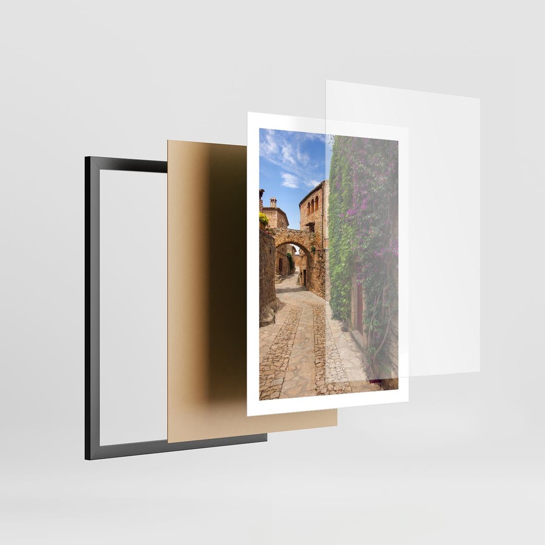 Plakat w ramie 50x70 - Uliczka pełna perspektywy i tajemnicy - uliczka, perspektywa - rama czarna