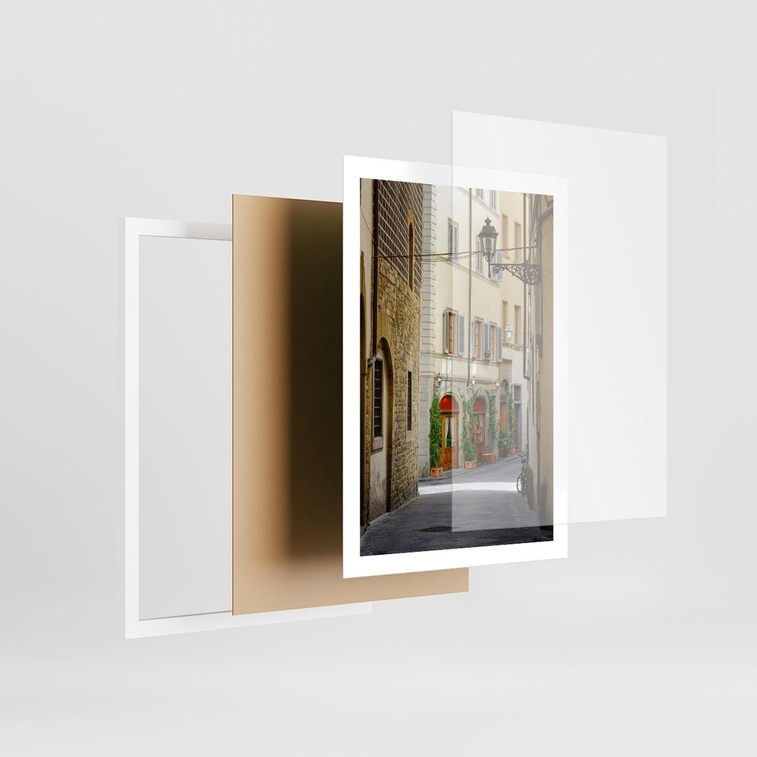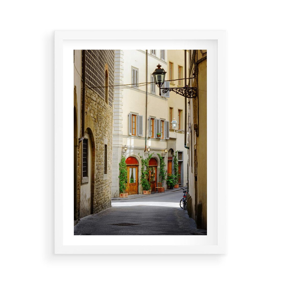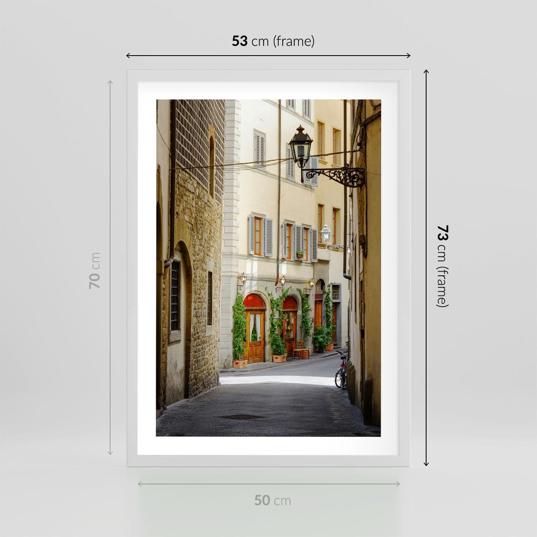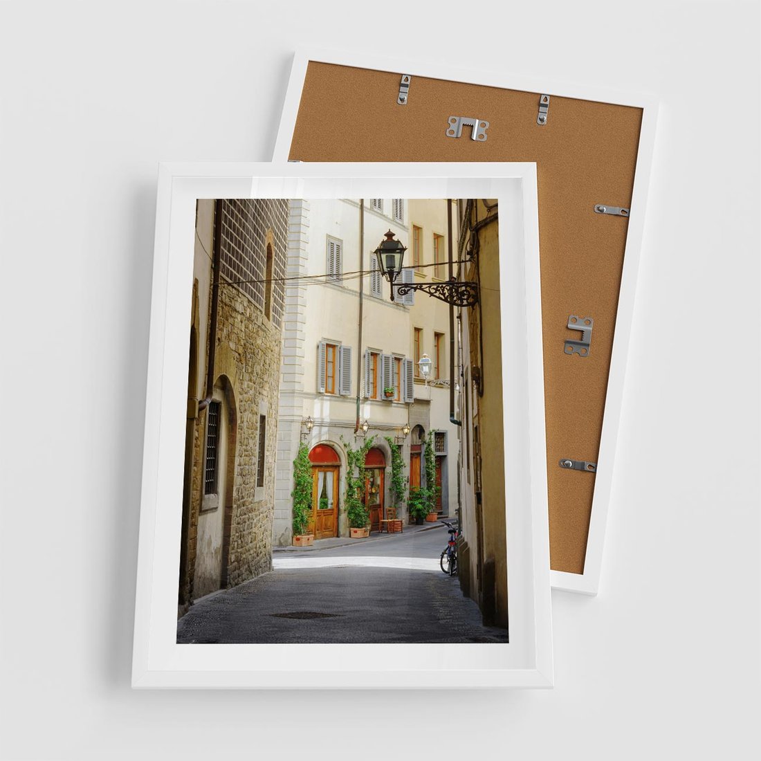 Plakat w ramie 50x70 - Uliczka: perspektywa miejskiego krajobrazu - uliczka, perspektywa - rama biała