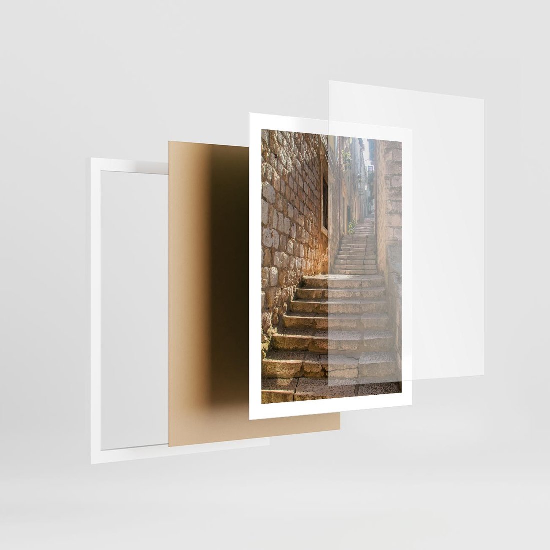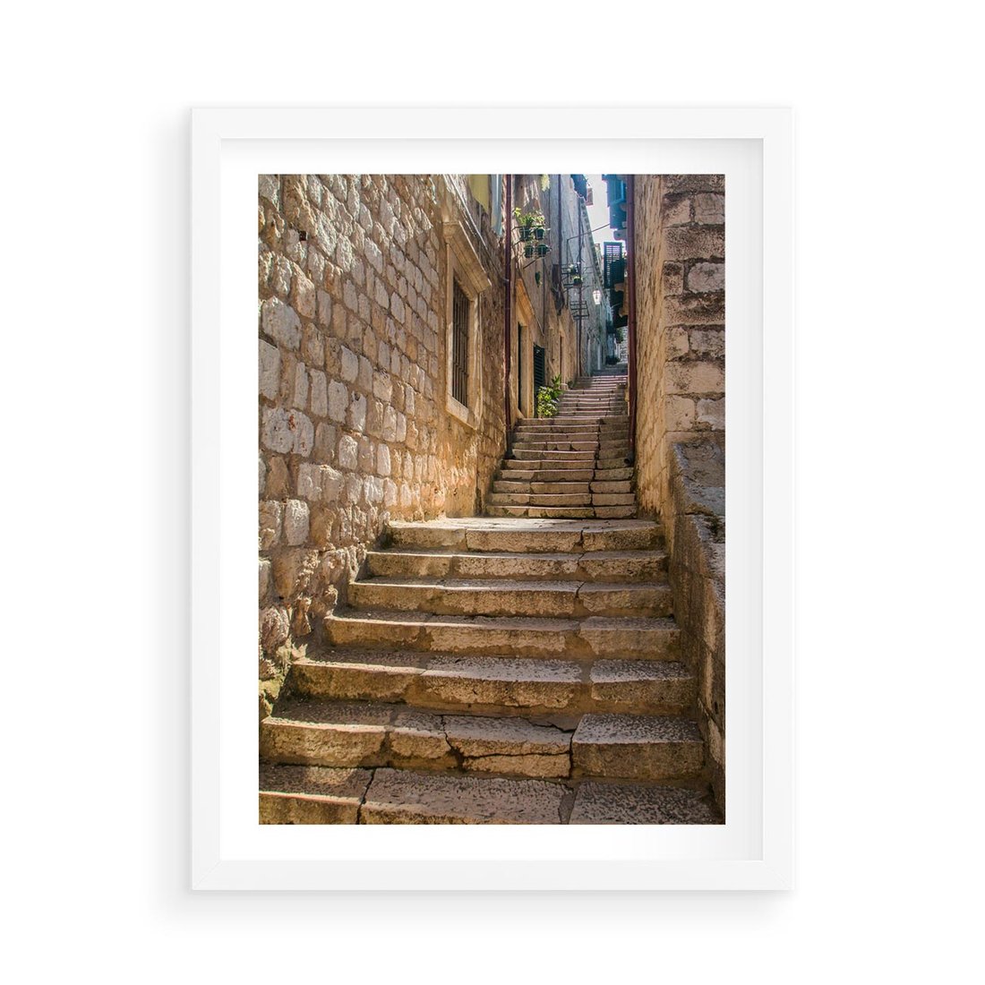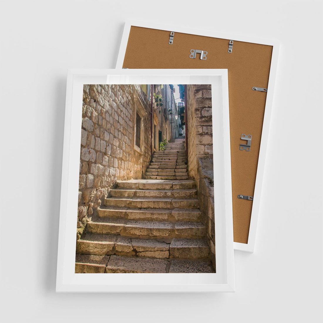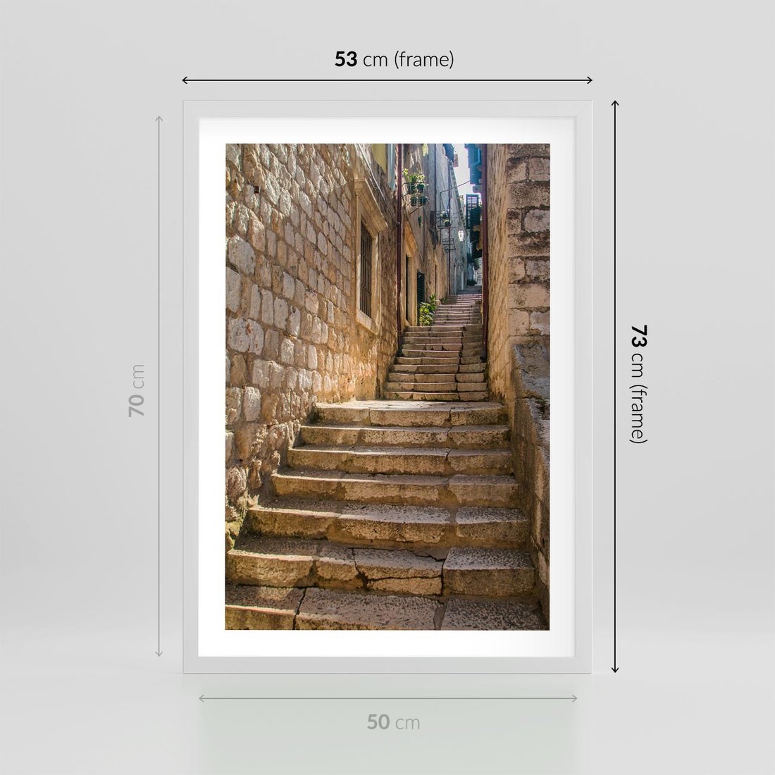 Plakat w ramie 50x70 - Uliczka: perspektywa miejskiego krajobrazu - uliczka, perspektywa - rama biała