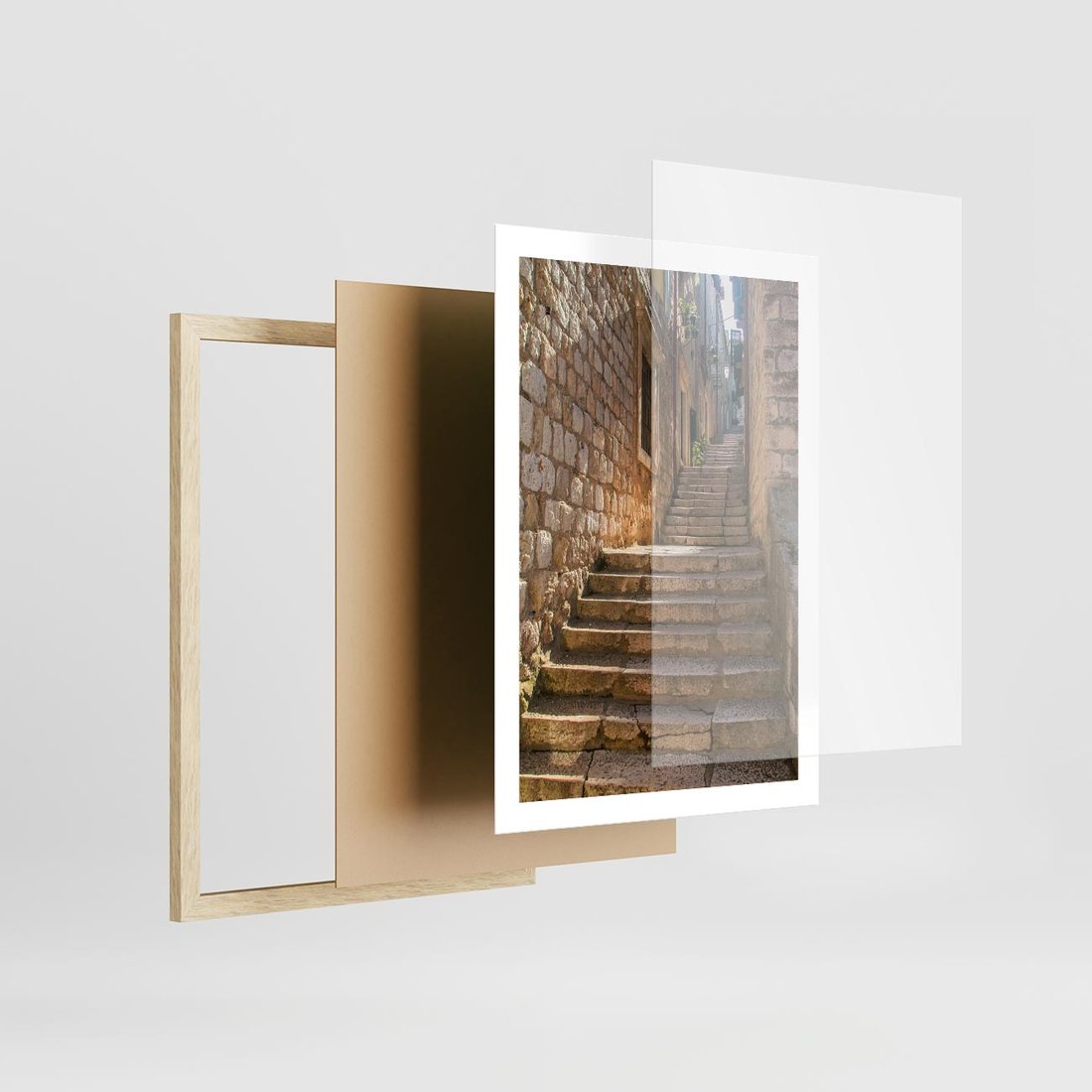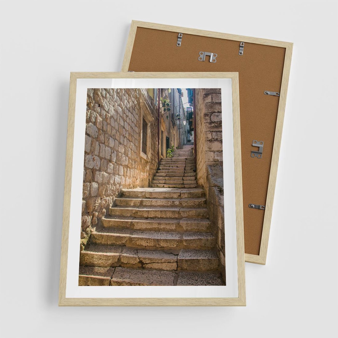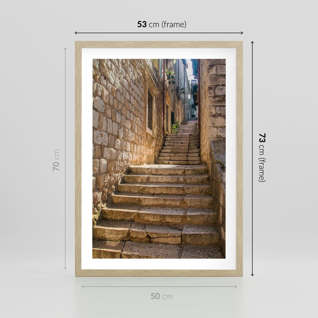 Plakat w ramie 50x70 - Uliczka: perspektywa miejskiego krajobrazu - uliczka, perspektywa - rama drewno