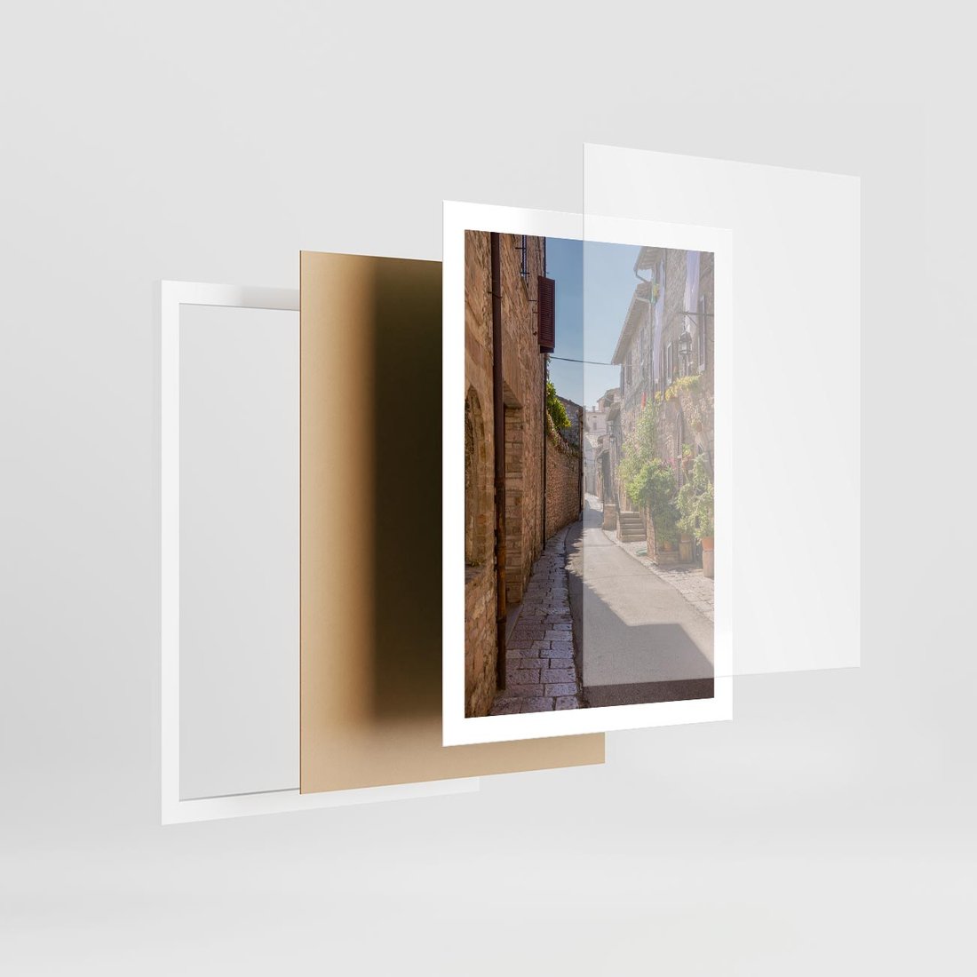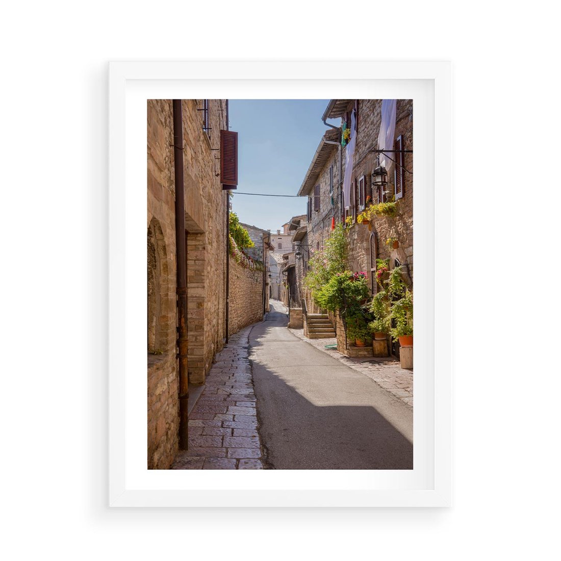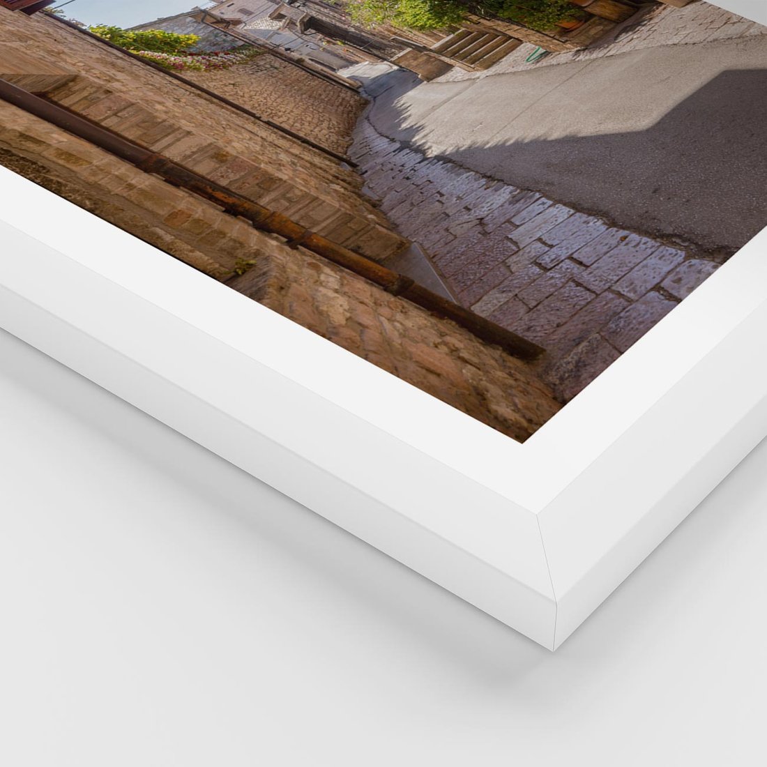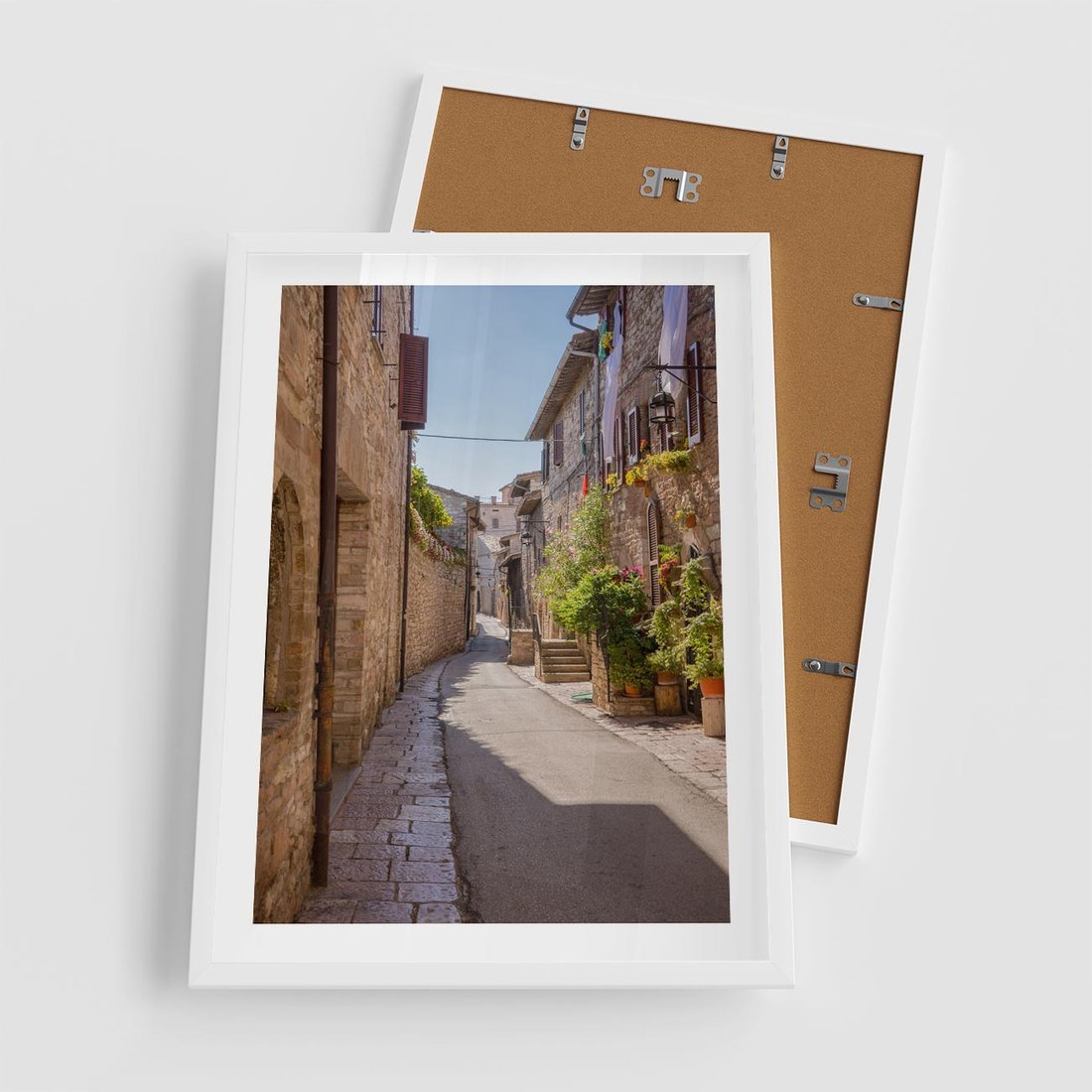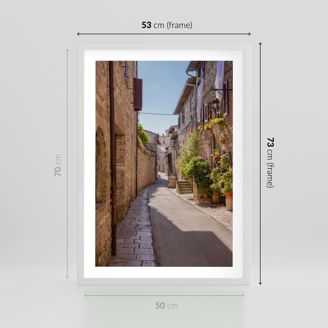 Plakat w ramie 50x70 - Uliczka Wakacyjnego Miasteczka - uliczka, wakacje - rama biała