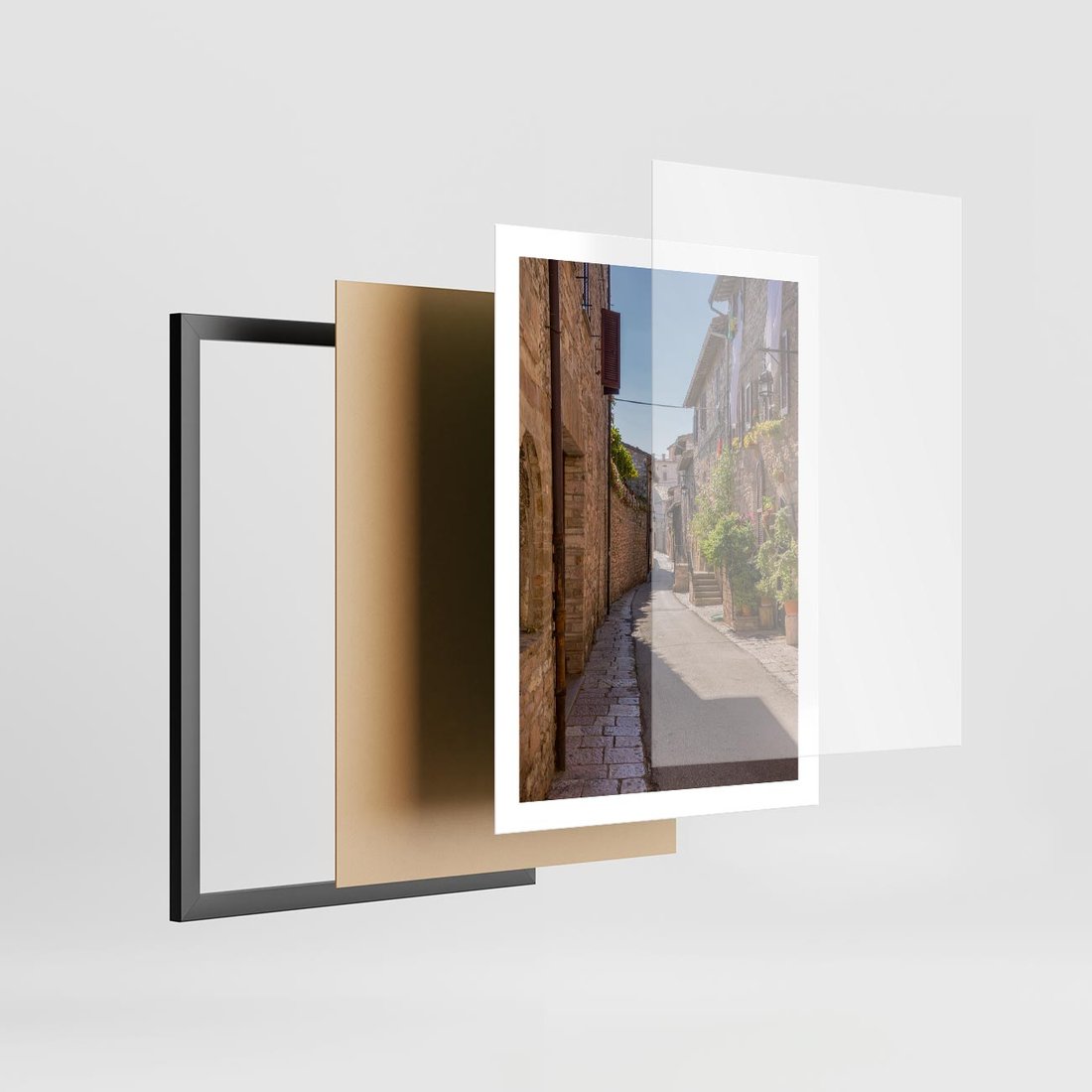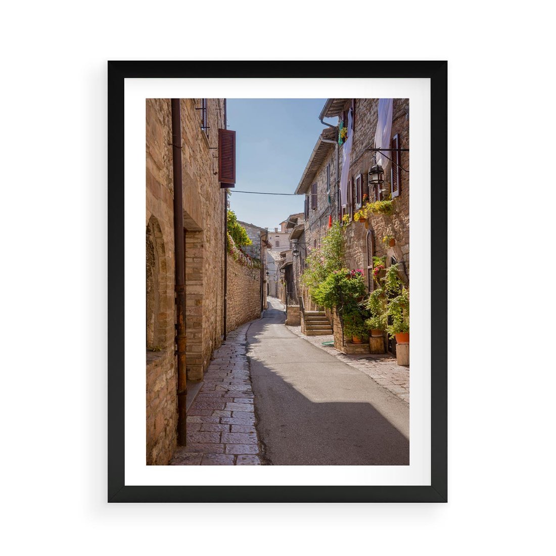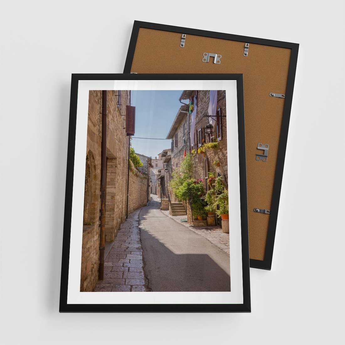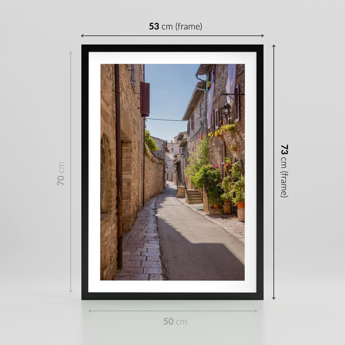 Plakat w ramie 50x70 - Uliczka Wakacyjnego Miasteczka - uliczka, wakacje - rama czarna