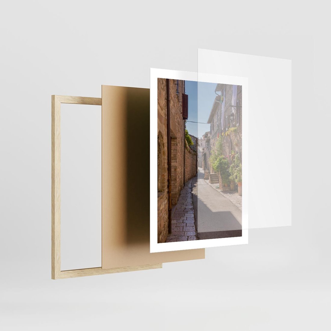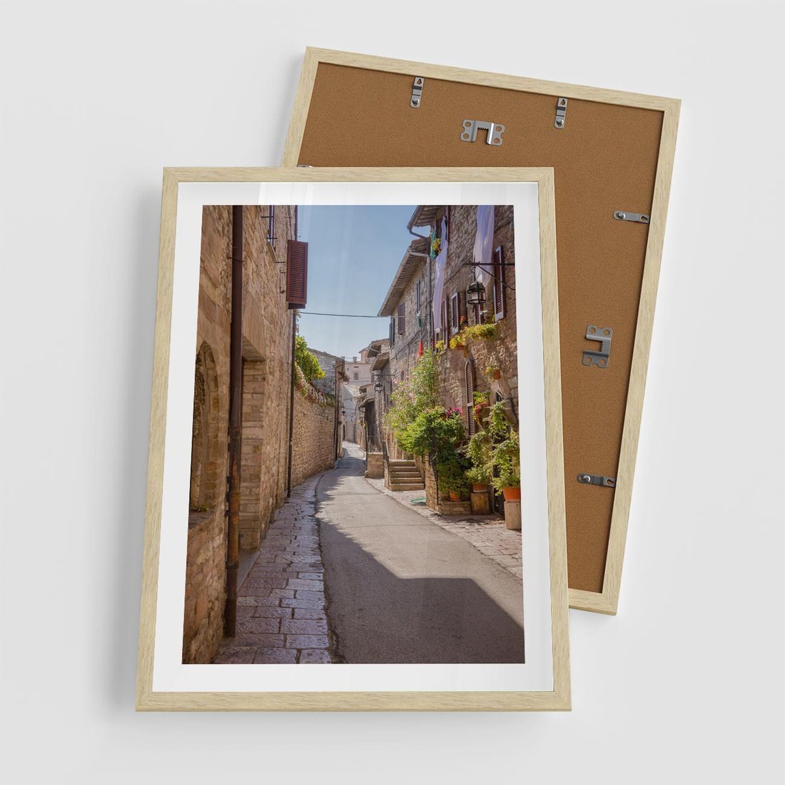 Plakat w ramie 50x70 - Uliczka Wakacyjnego Miasteczka - uliczka, wakacje - rama drewno