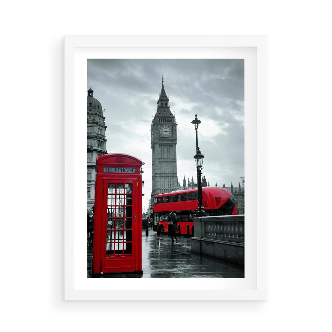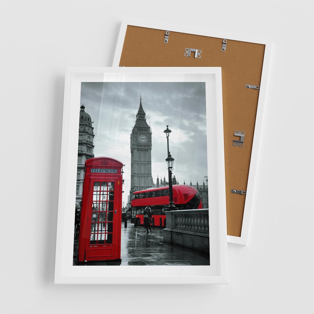Plakat w ramie 50x70 - Uliczka z charakterystyczną budką w Londynie - Londyn, budka - rama biała