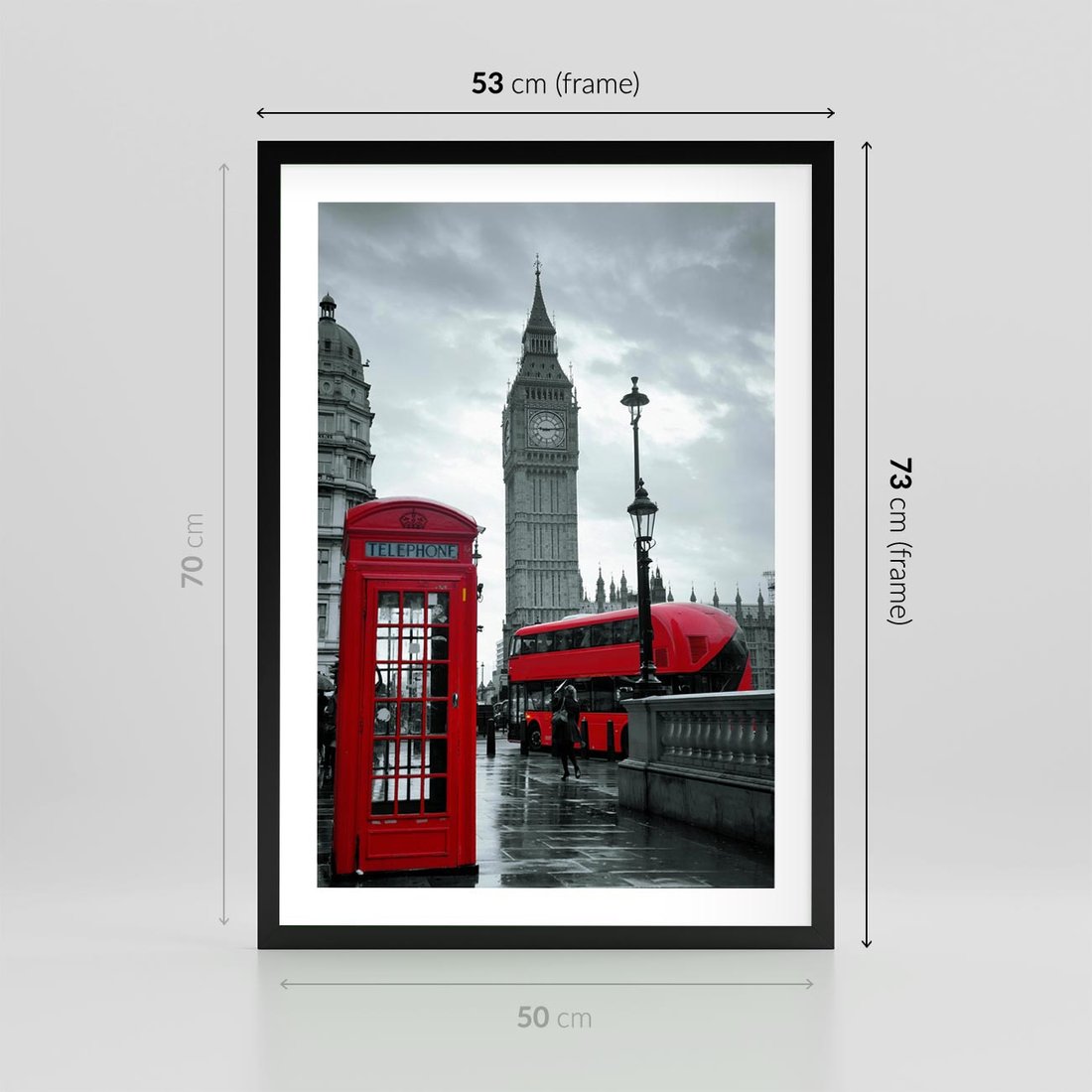 Plakat w ramie 50x70 - Uliczka z charakterystyczną budką w Londynie - Londyn, budka - rama czarna