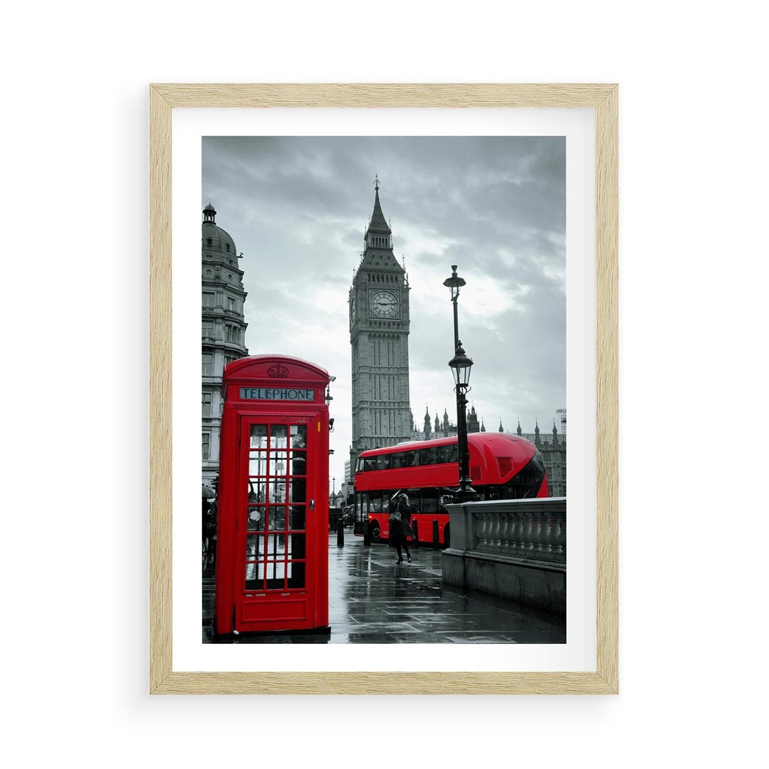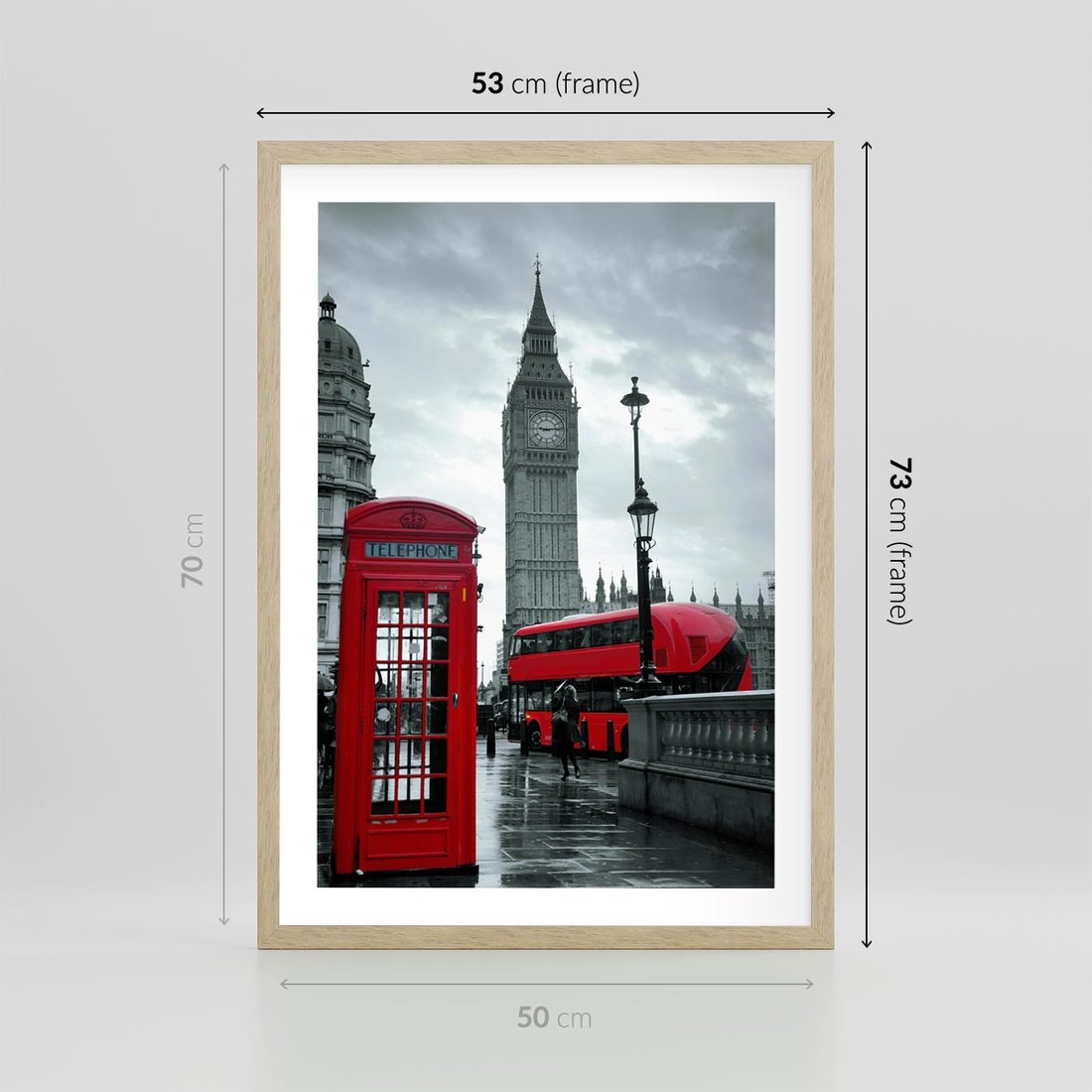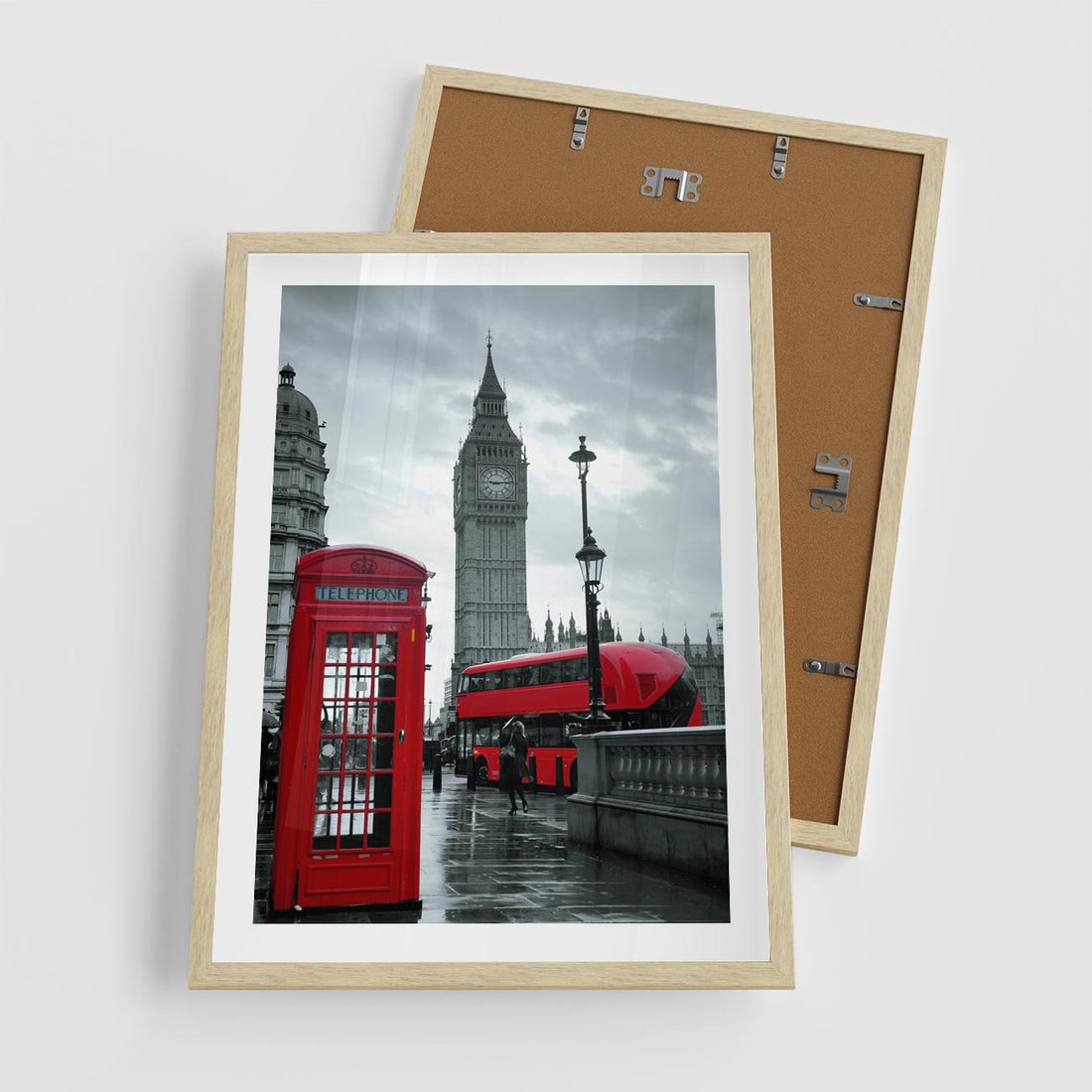 Plakat w ramie 50x70 - Uliczka z charakterystyczną budką w Londynie - Londyn, budka - rama drewno