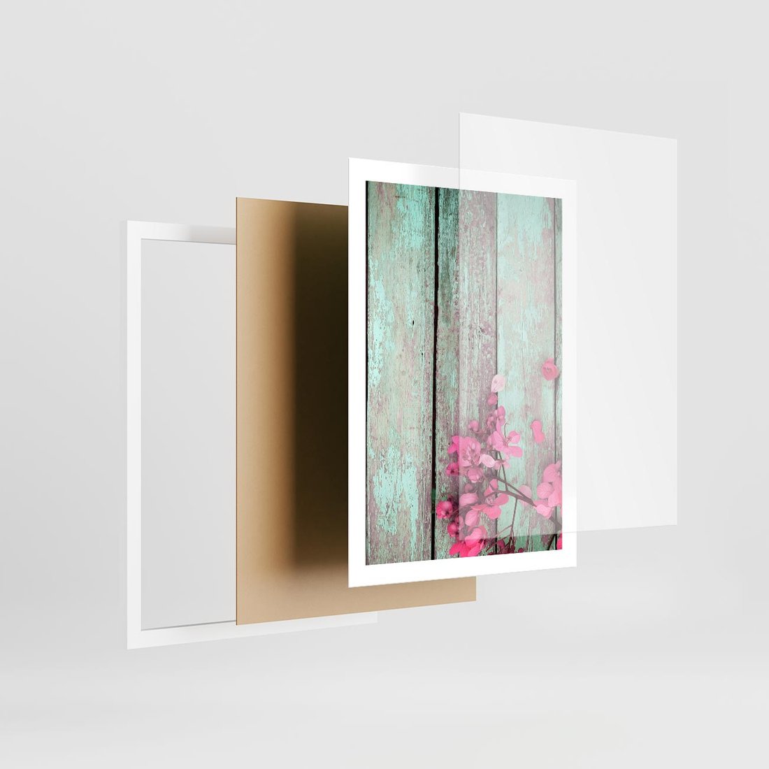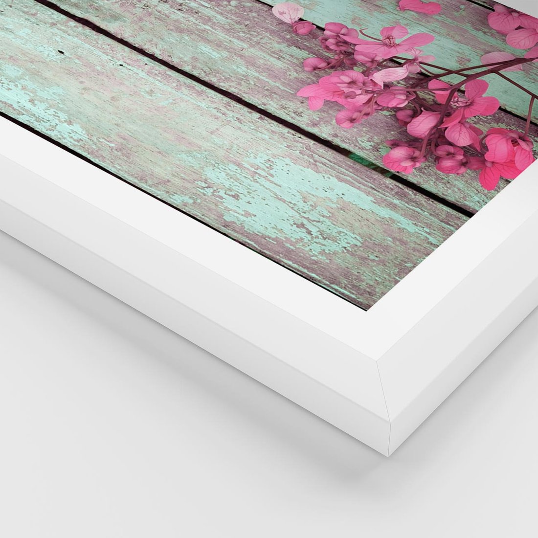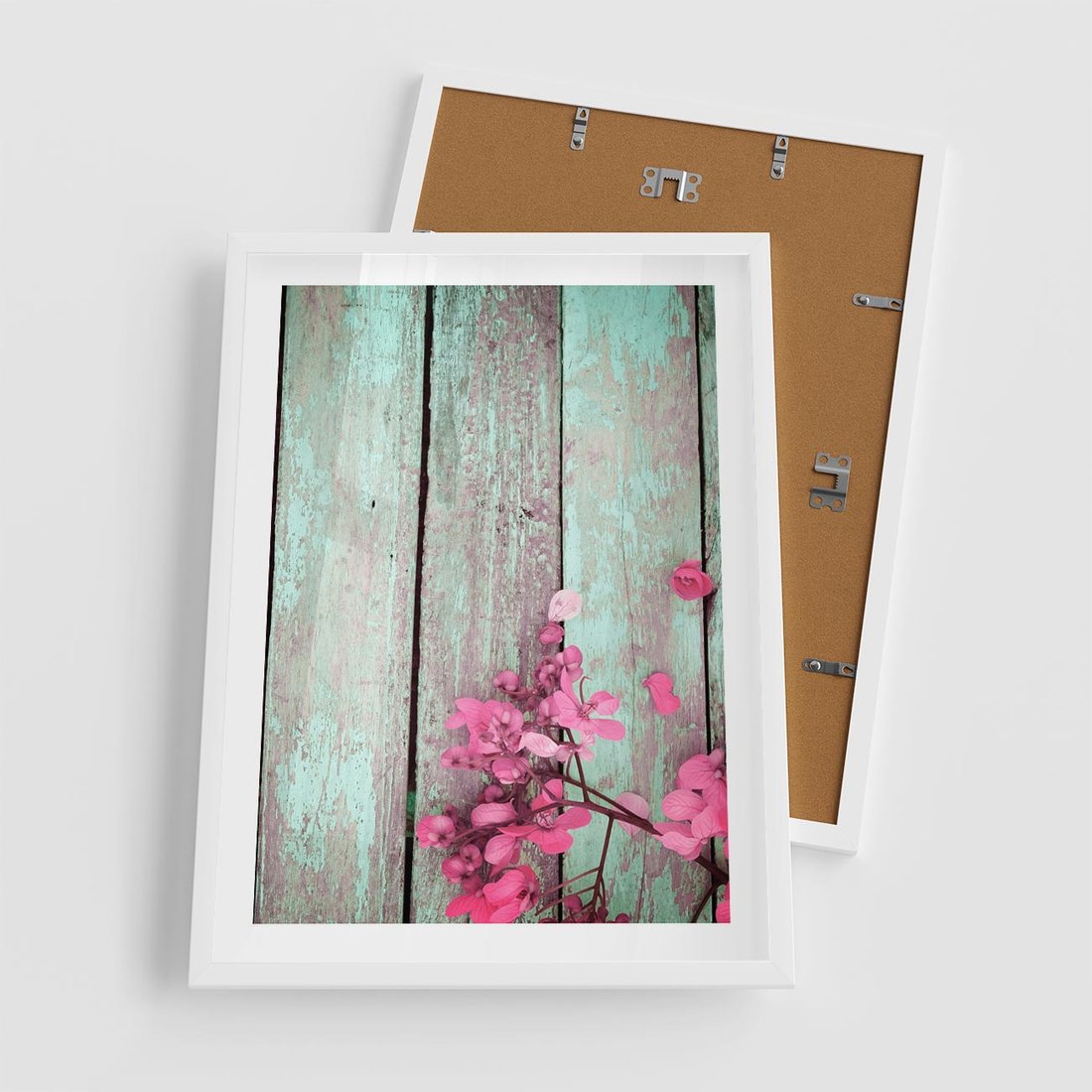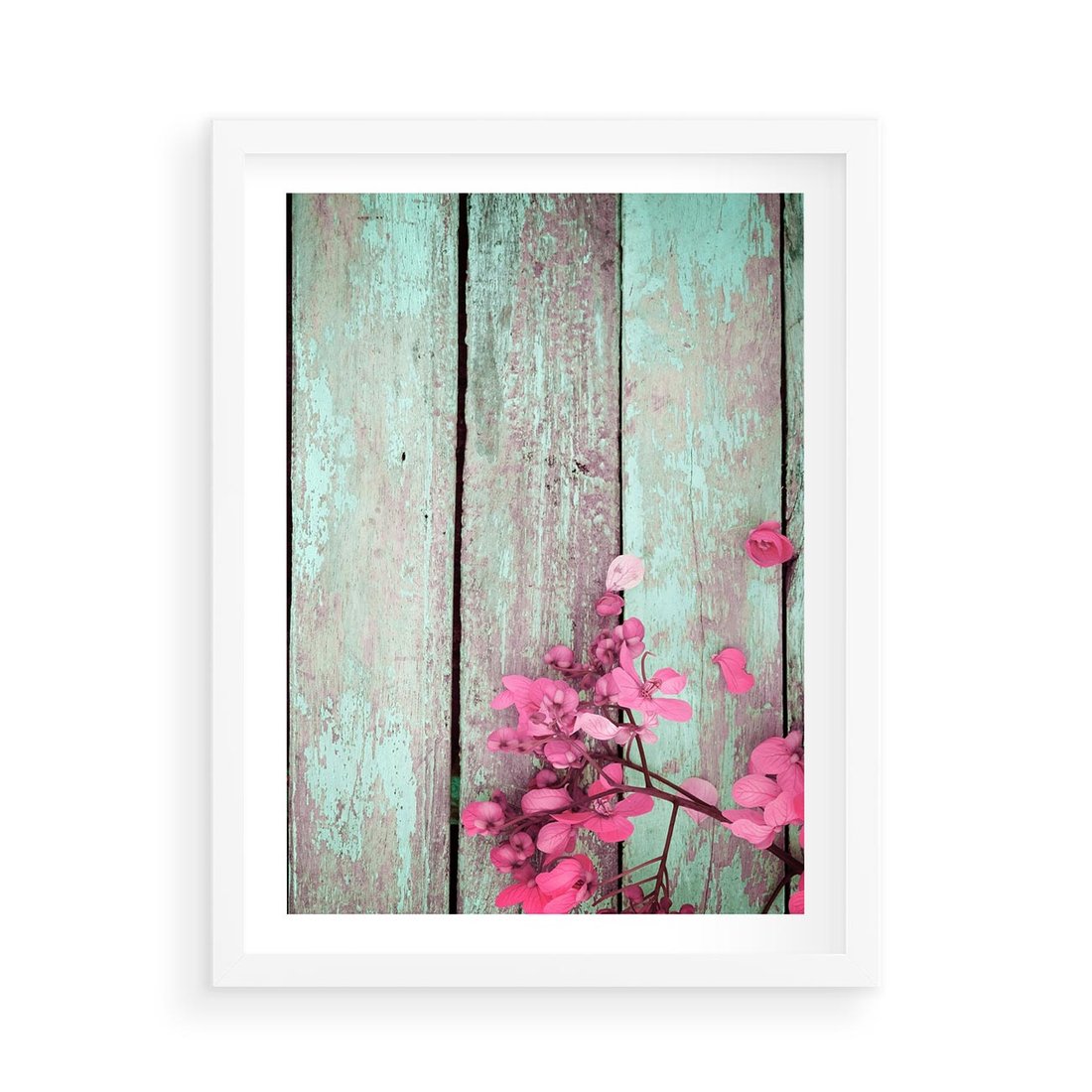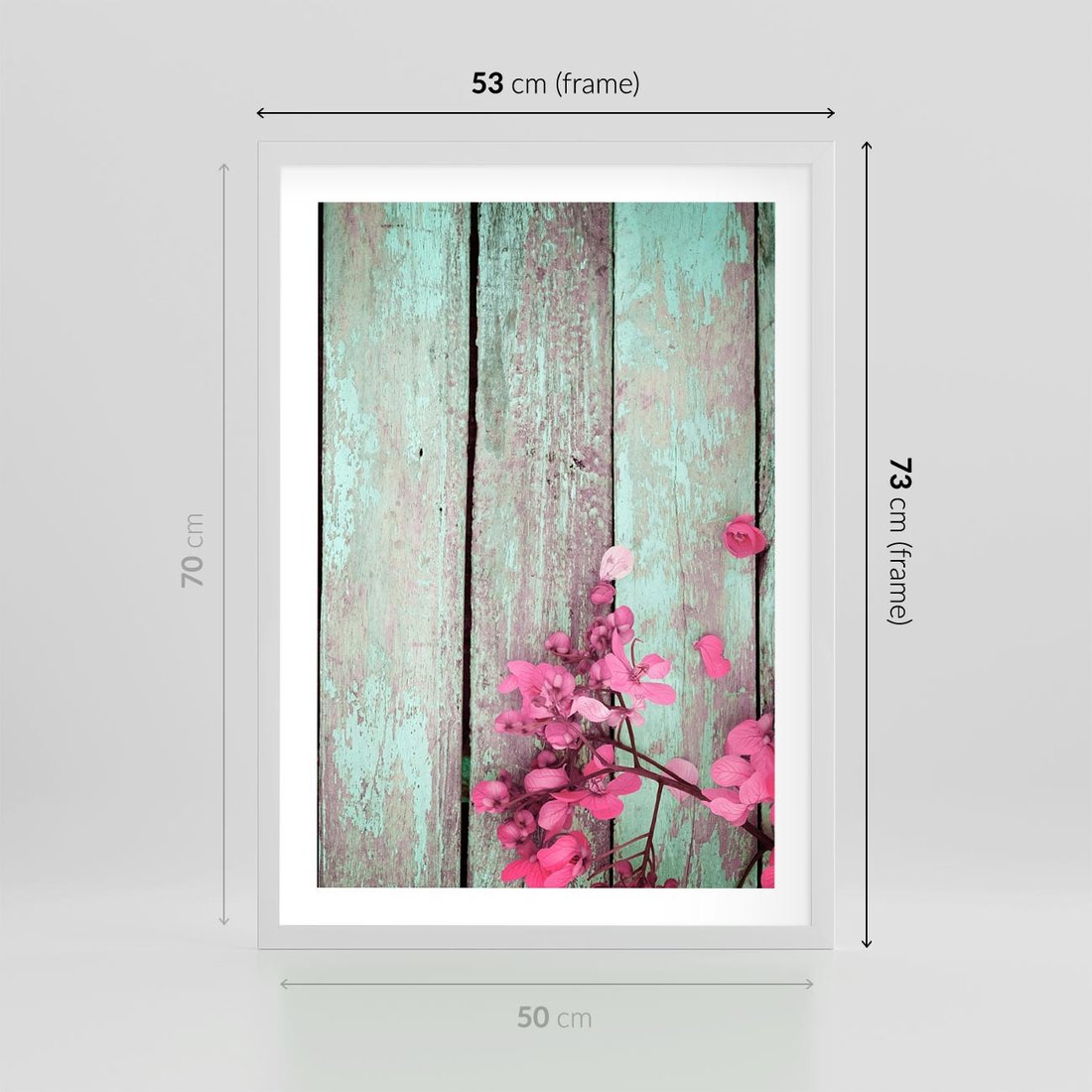 Plakat w ramie 50x70 - Urok Dawnych Czasów - kwiaty, deski - rama biała