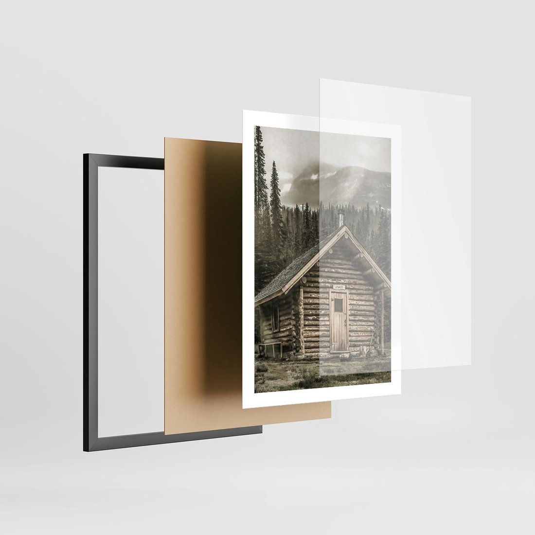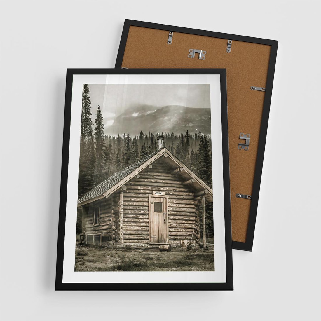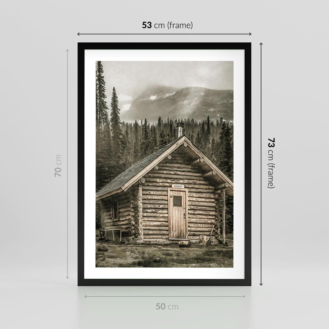 - Plakat w ramie 50x70 - Urok Drewnianej Chatki w Górach
