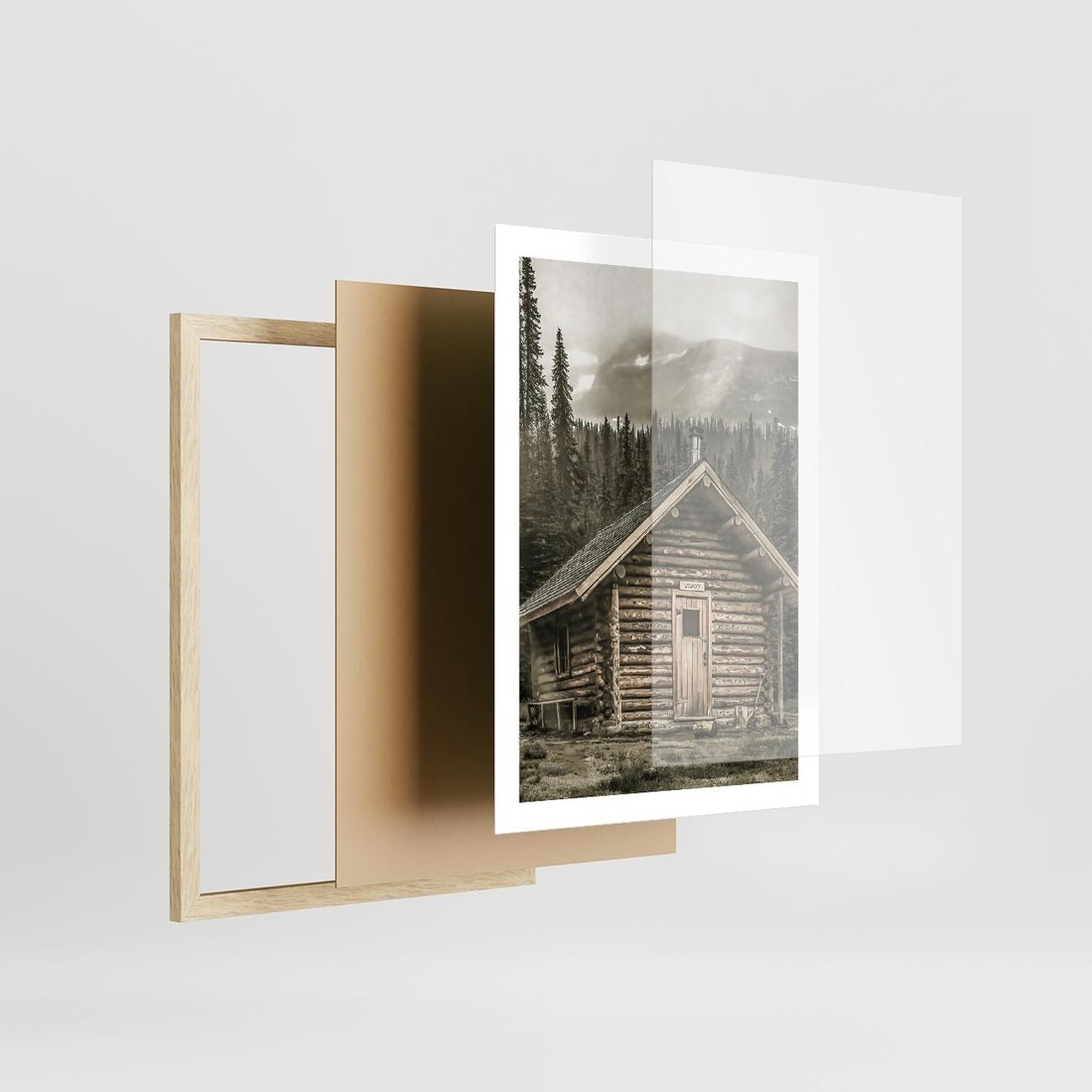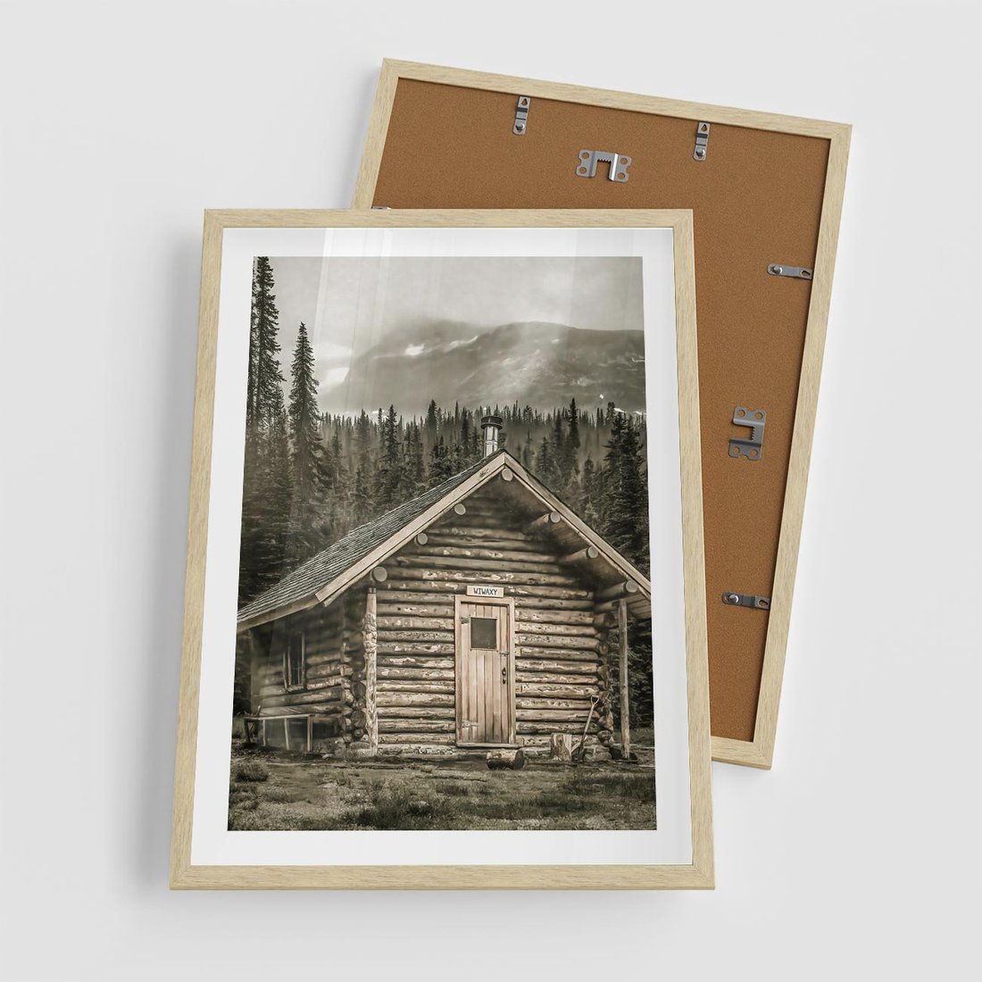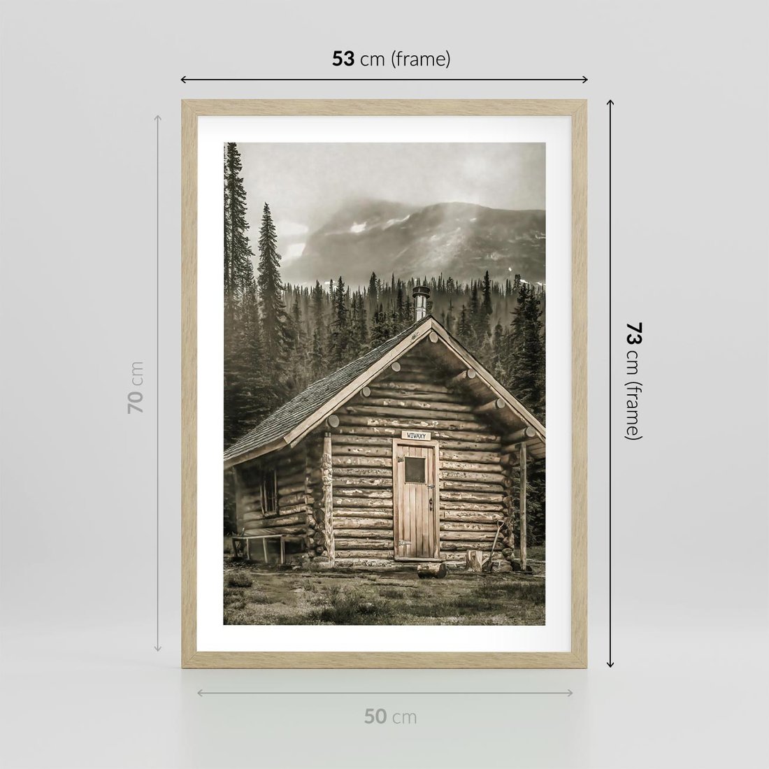 - Plakat w ramie 50x70 - Urok Drewnianej Chatki w Górach