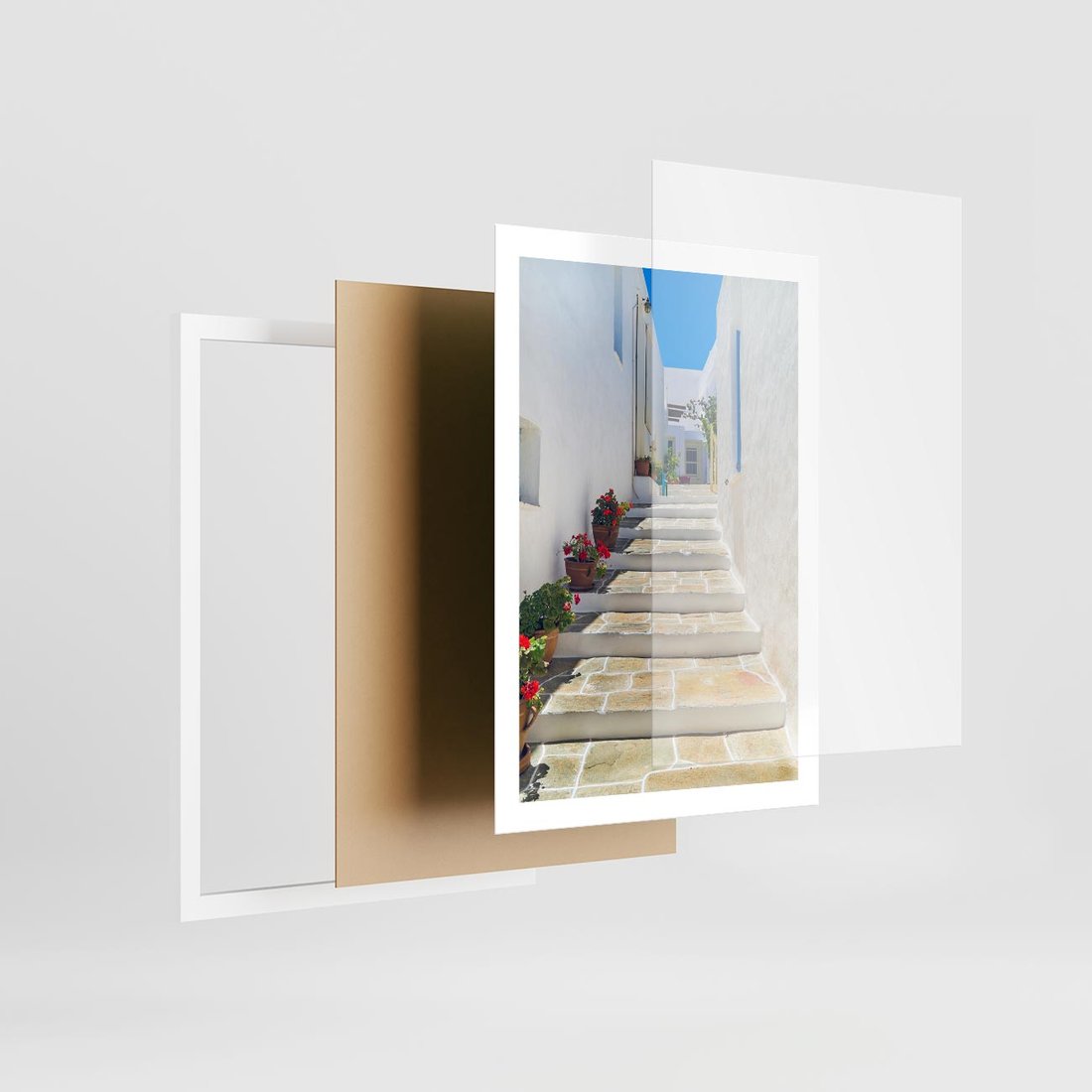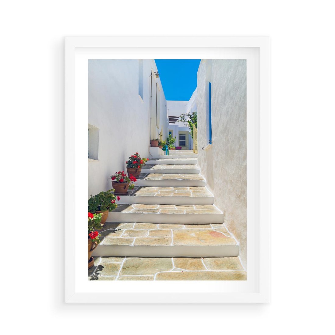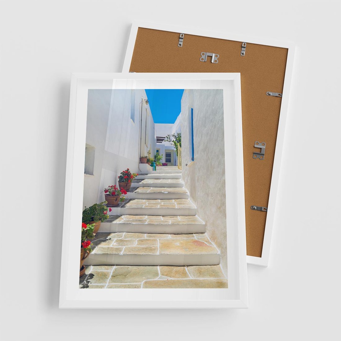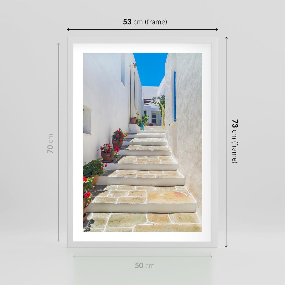 Plakat w ramie 50x70 - Urok Greckiej Uliczki - grecka, uliczka - rama biała