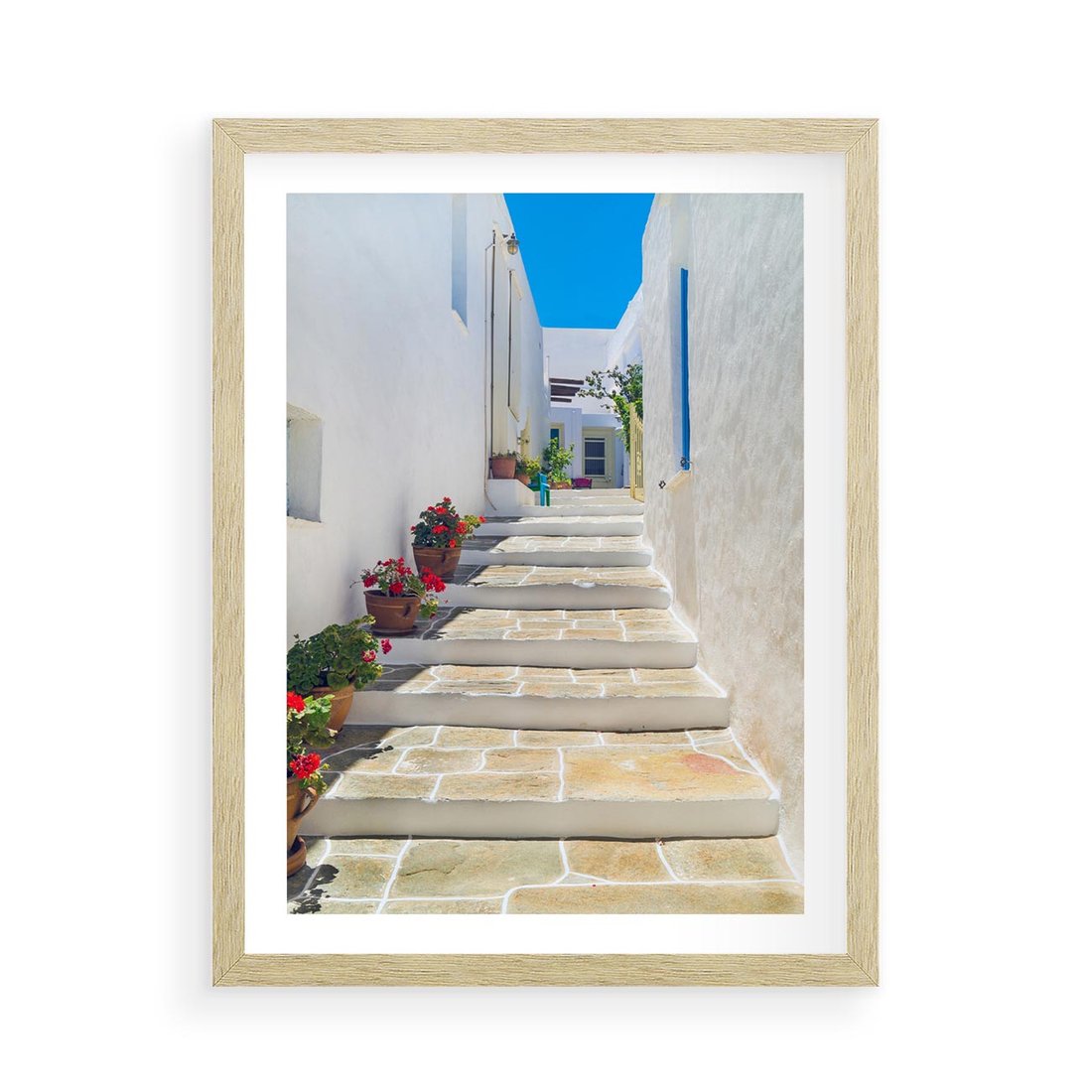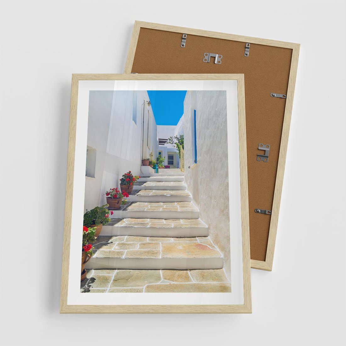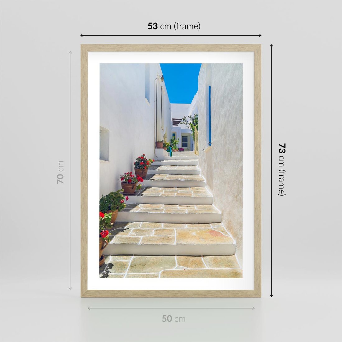 Plakat w ramie 50x70 - Urok Greckiej Uliczki - grecka, uliczka - rama drewno