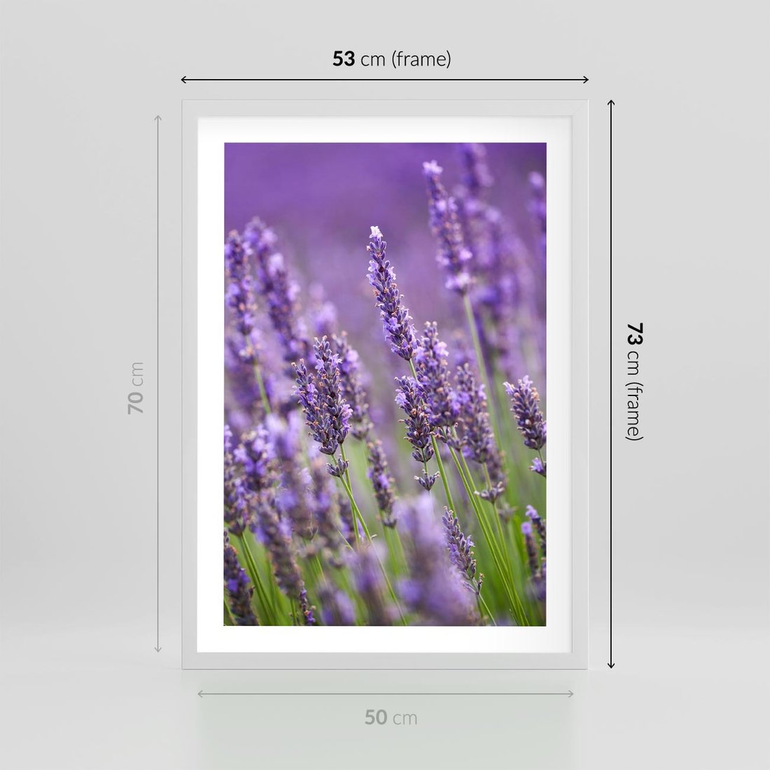 Plakat w ramie 50x70 - Urok lawendy - lawenda, kwiaty - rama biała