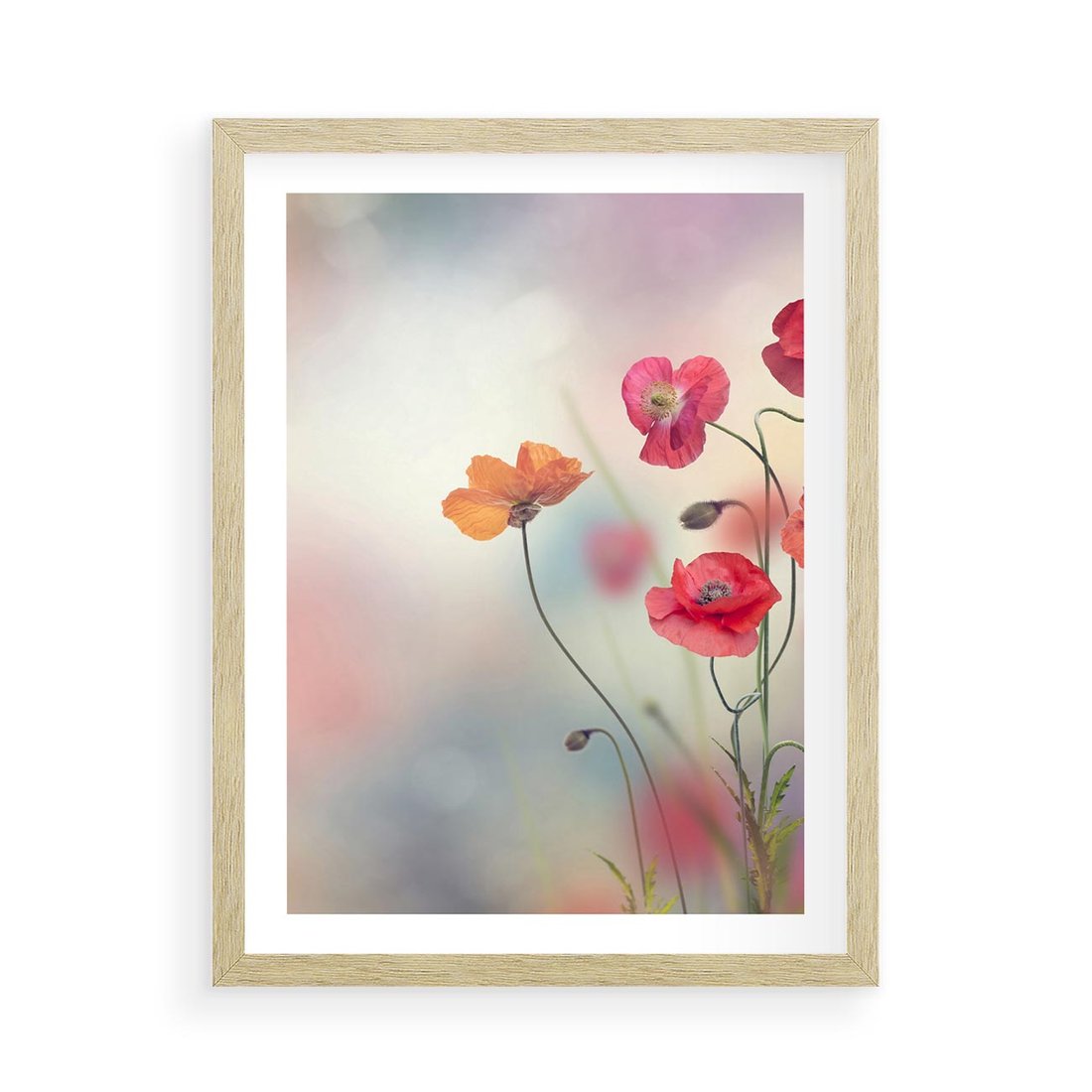 Plakat w ramie 50x70 - Urok natury - kwiaty, akwarela - rama drewno