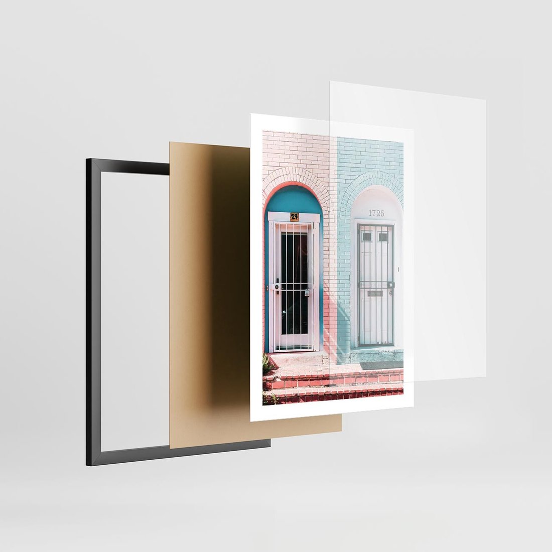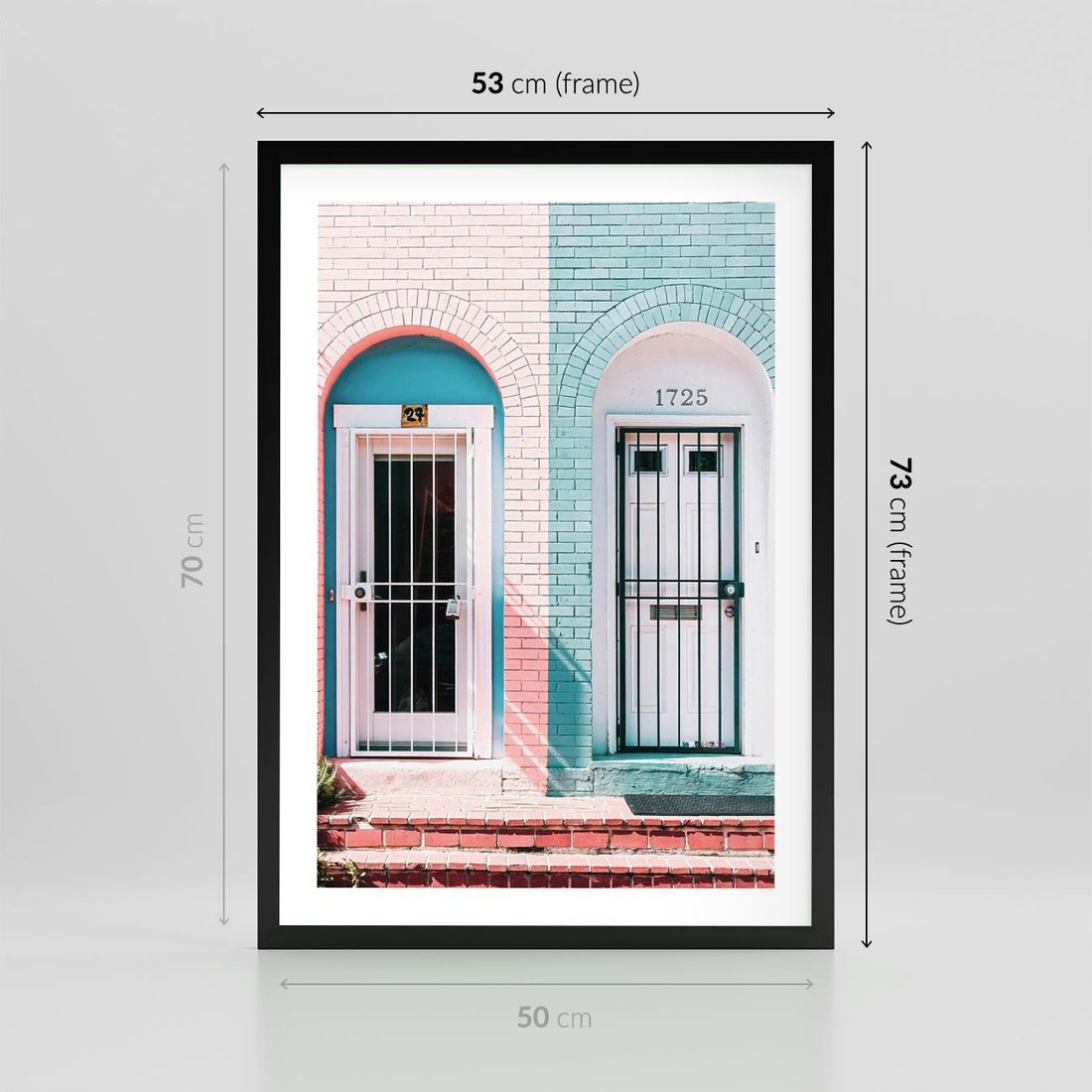 Plakat w ramie 50x70 - Urok Starych Drzwi - stare retro drzwi kamienicy, pastelowe kolory - rama czarna