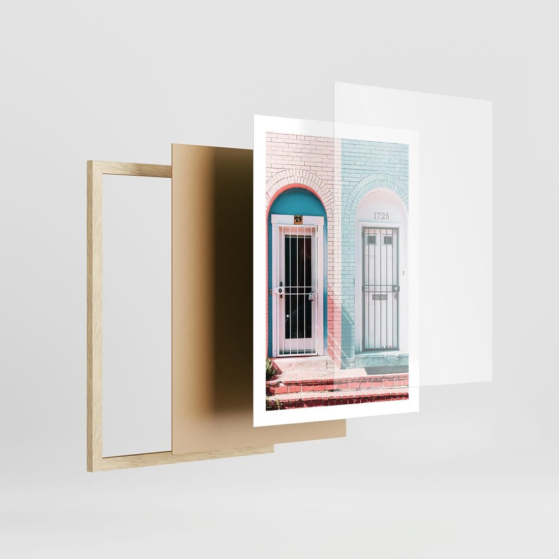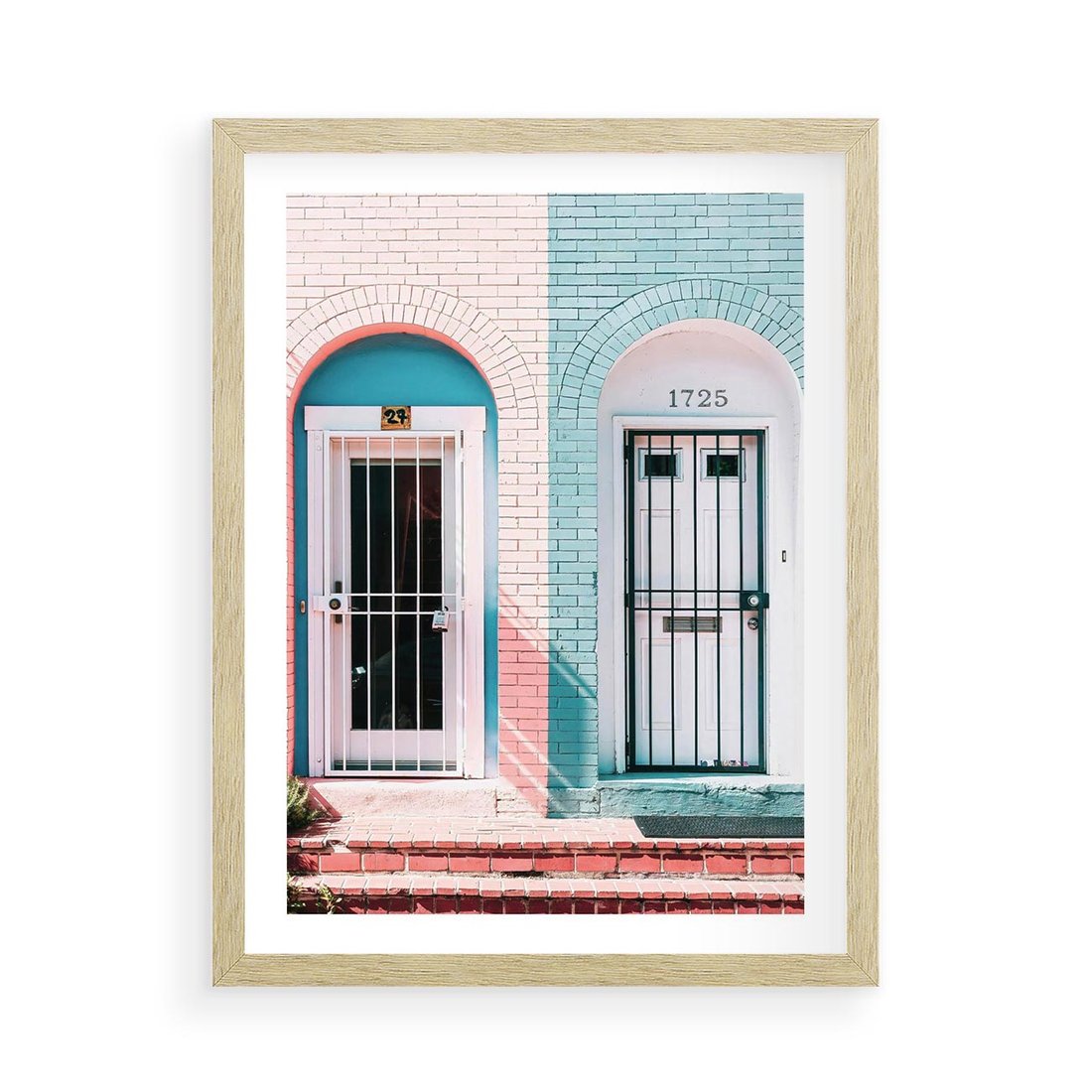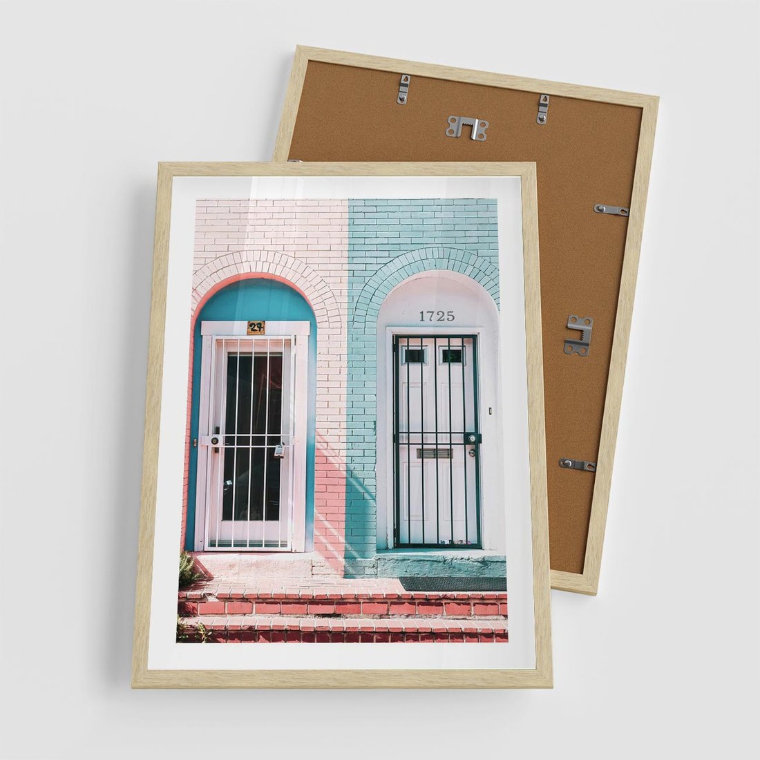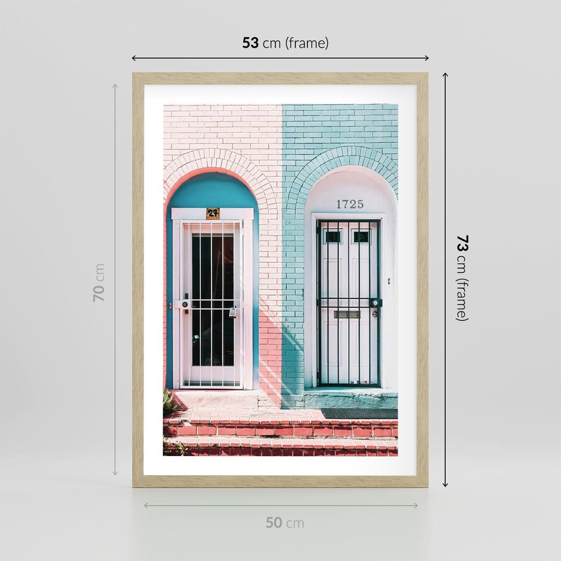 Plakat w ramie 50x70 - Urok Starych Drzwi - stare retro drzwi kamienicy, pastelowe kolory - rama drewno