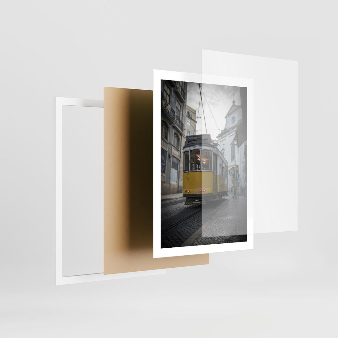 Plakat w ramie 50x70 - Urok tramwajów Lizbony - tramwaj, Lizbona - rama biała