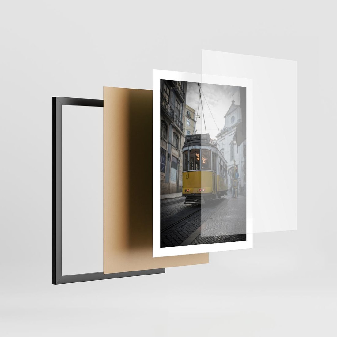 Plakat w ramie 50x70 - Urok tramwajów Lizbony - tramwaj, Lizbona - rama czarna