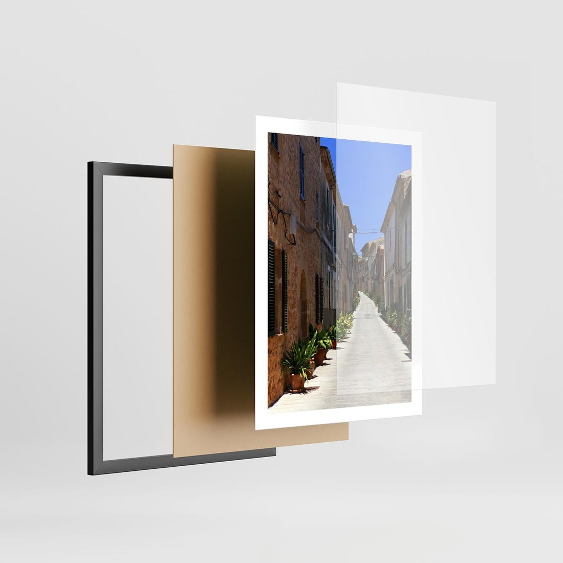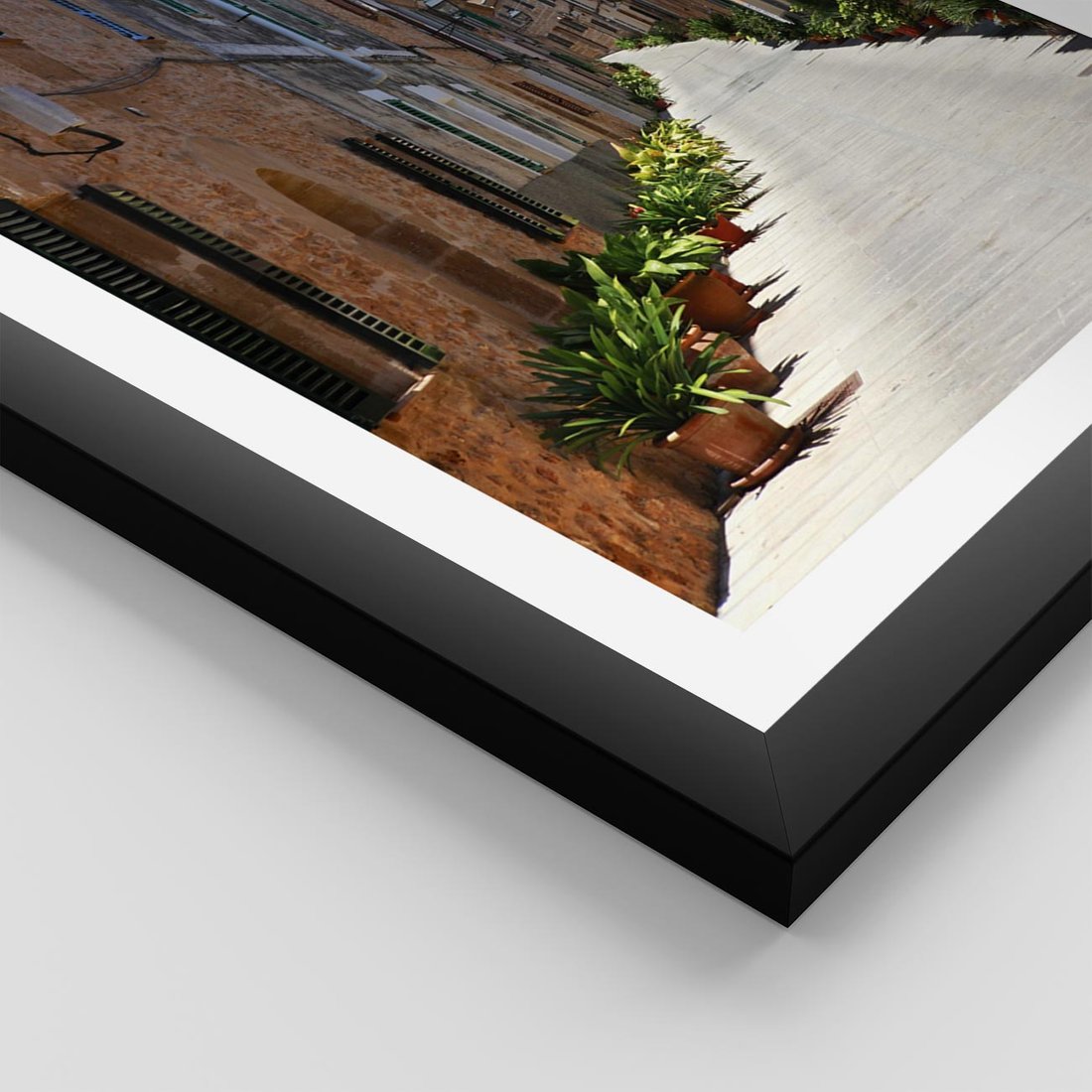 Plakat w ramie 50x70 - Urok uliczki: perspektywa miasta - uliczka, perspektywa - rama czarna