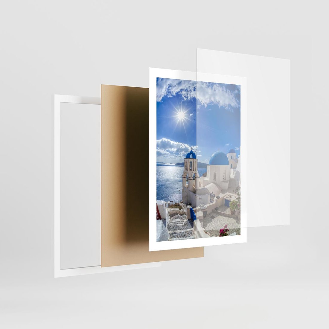 Plakat w ramie 50x70 - Uroki Santorini we Włoszech - Santorini, Włochy - rama biała