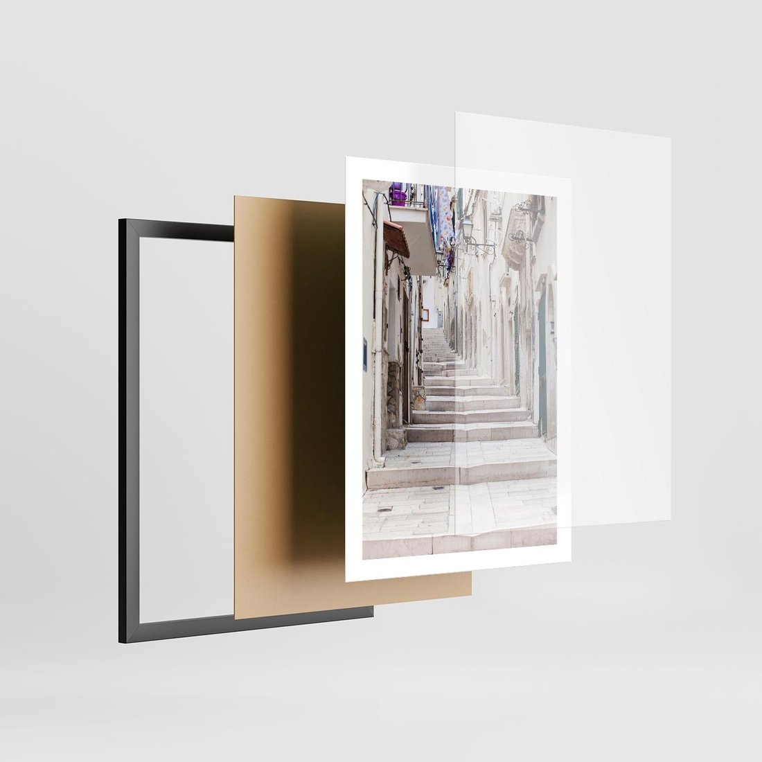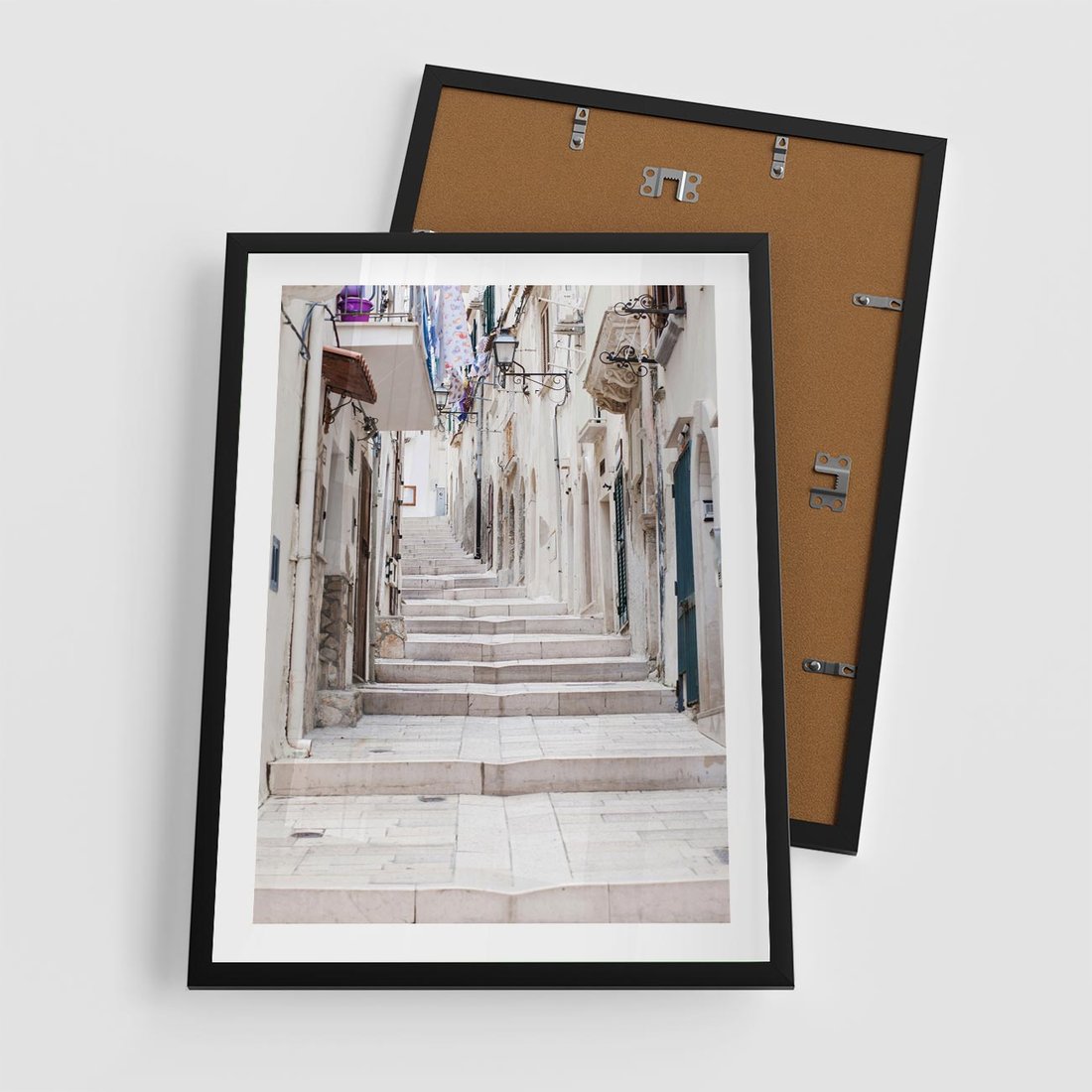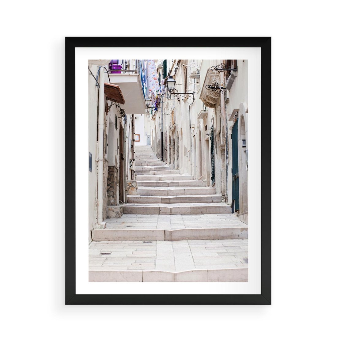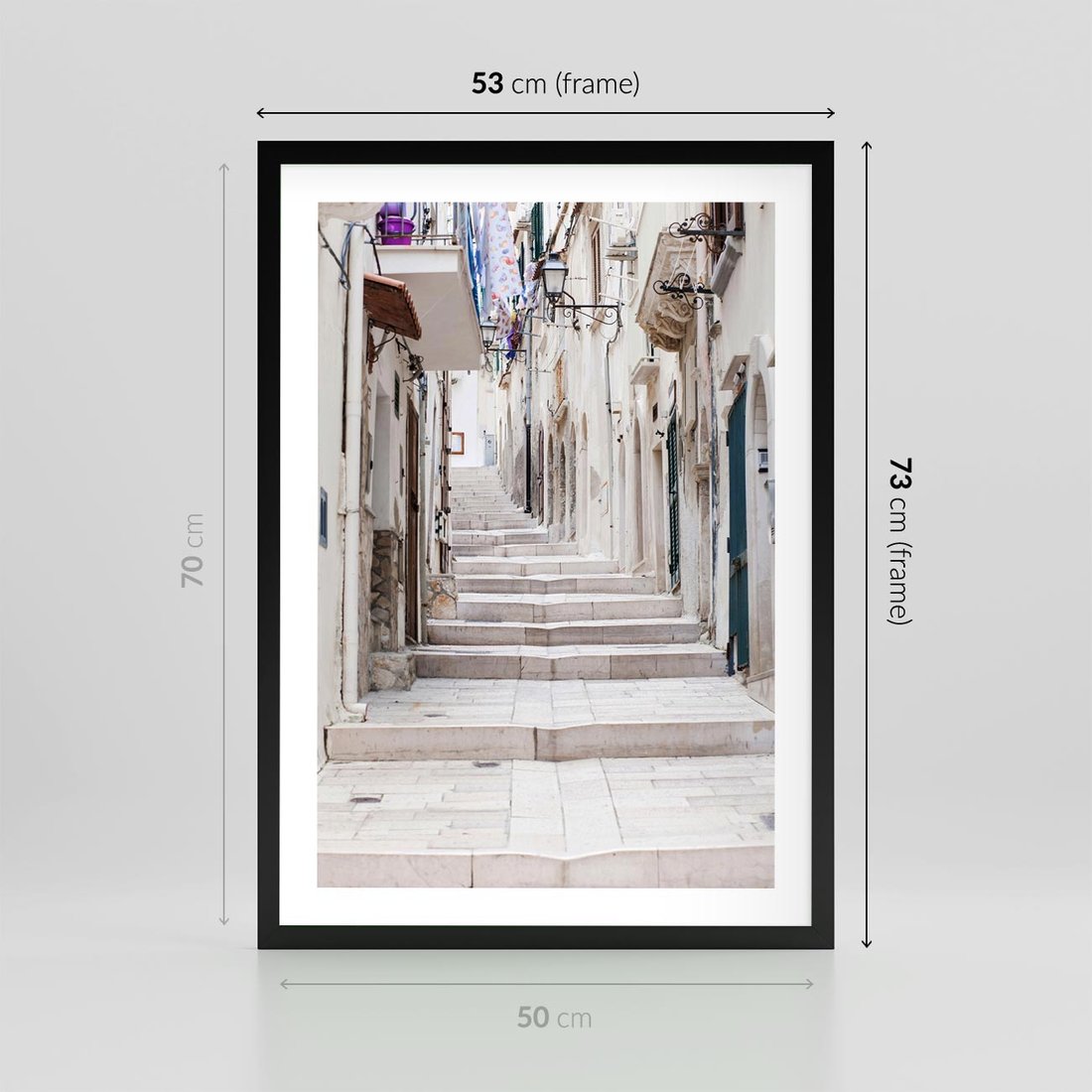 Plakat w ramie 50x70 - Urokliwa uliczka w perspektywie - uliczka, perspektywa - rama czarna