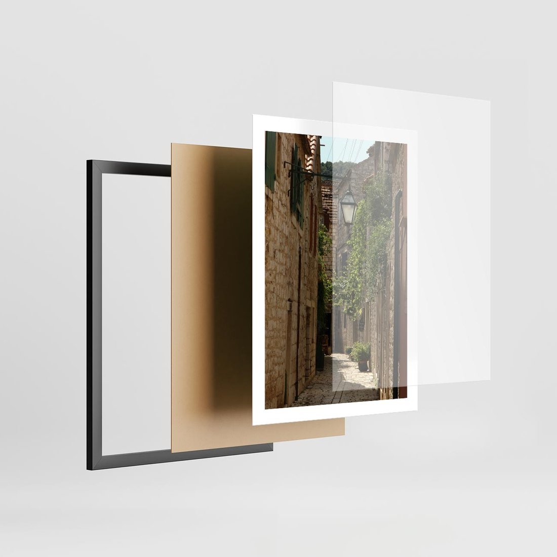Plakat w ramie 50x70 - Urokliwa włoska uliczka - włoska, uliczka - rama czarna