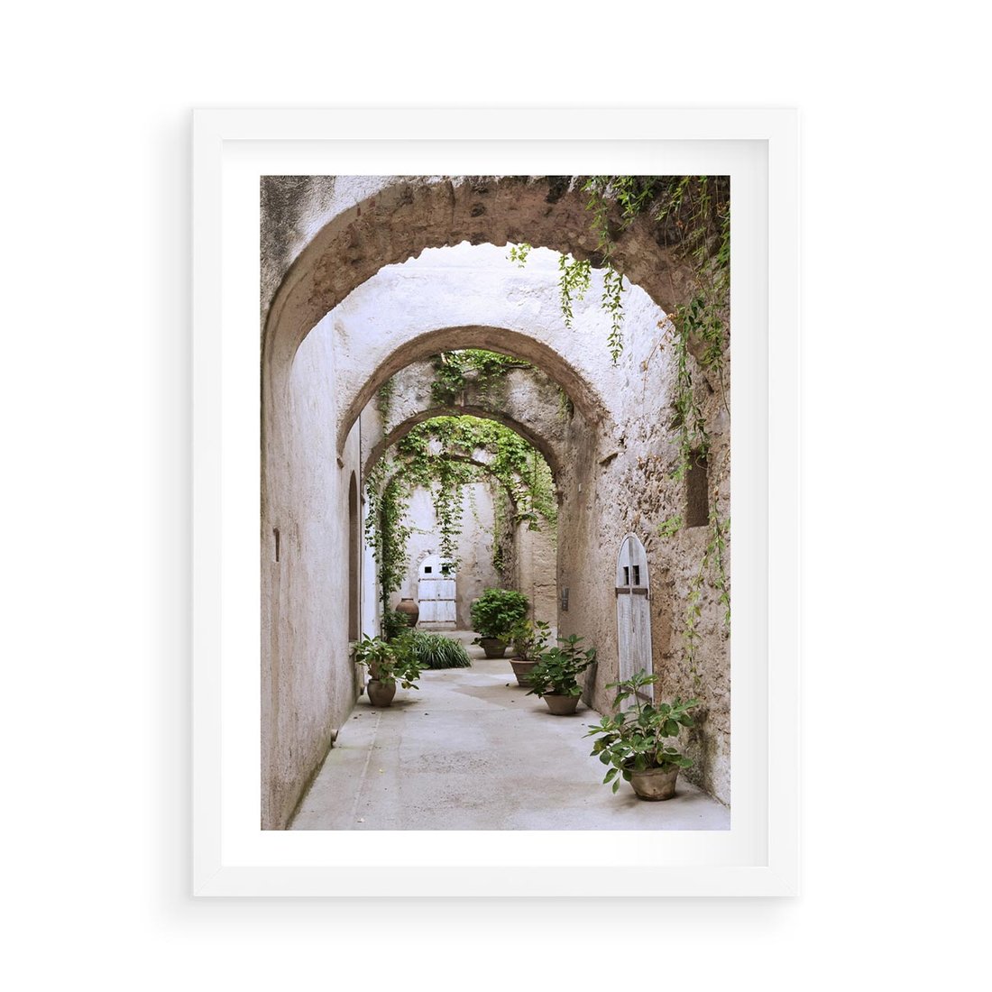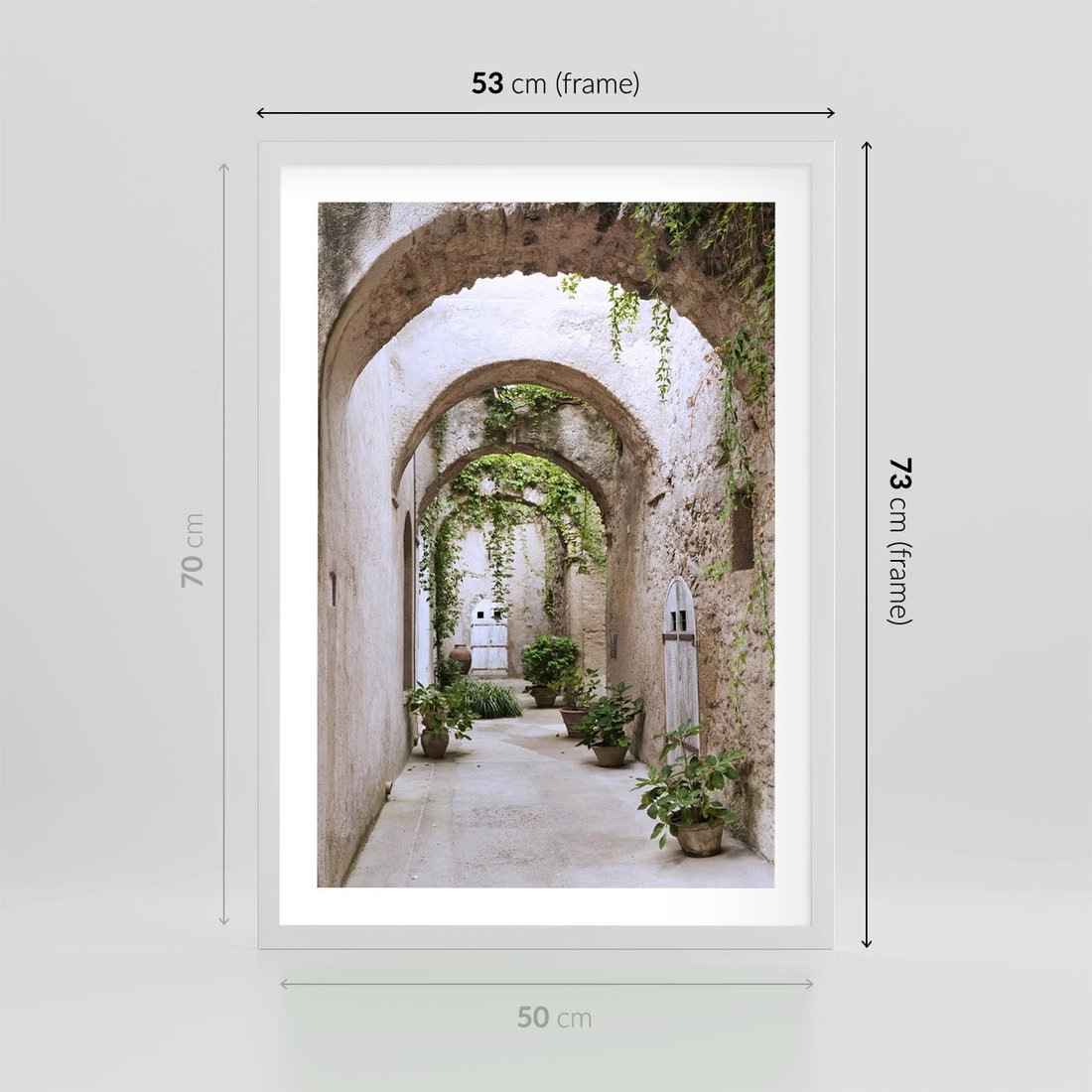 Plakat w ramie 50x70 - Urokliwa Zaułek - klimatyczna, uliczka - rama biała
