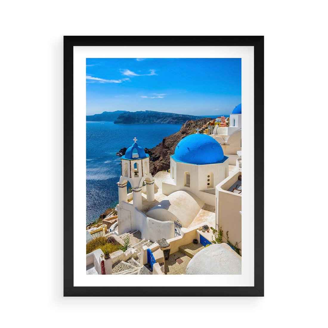 Plakat w ramie 50x70 - Urokliwy widok na Santorini - Santorini, widok - rama czarna