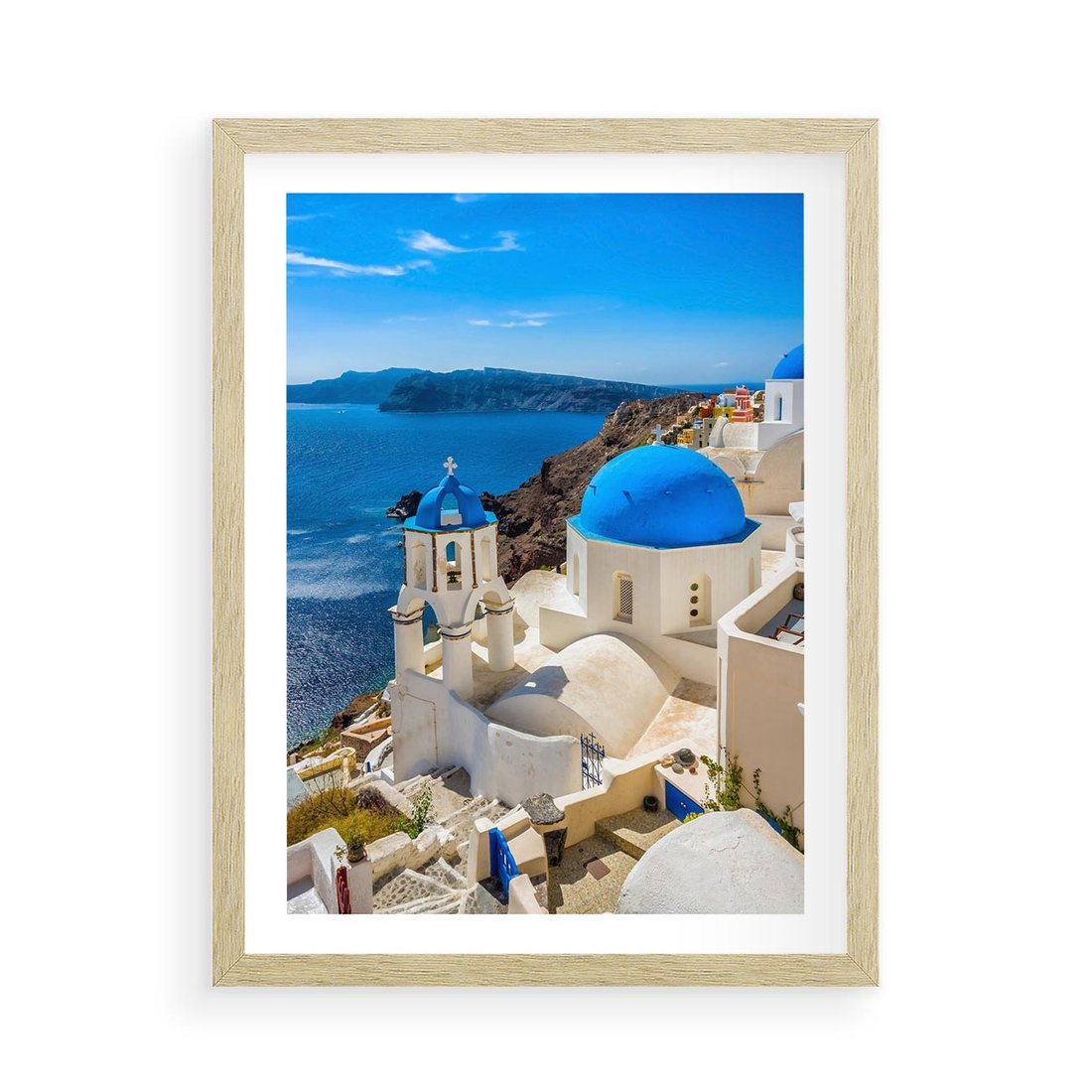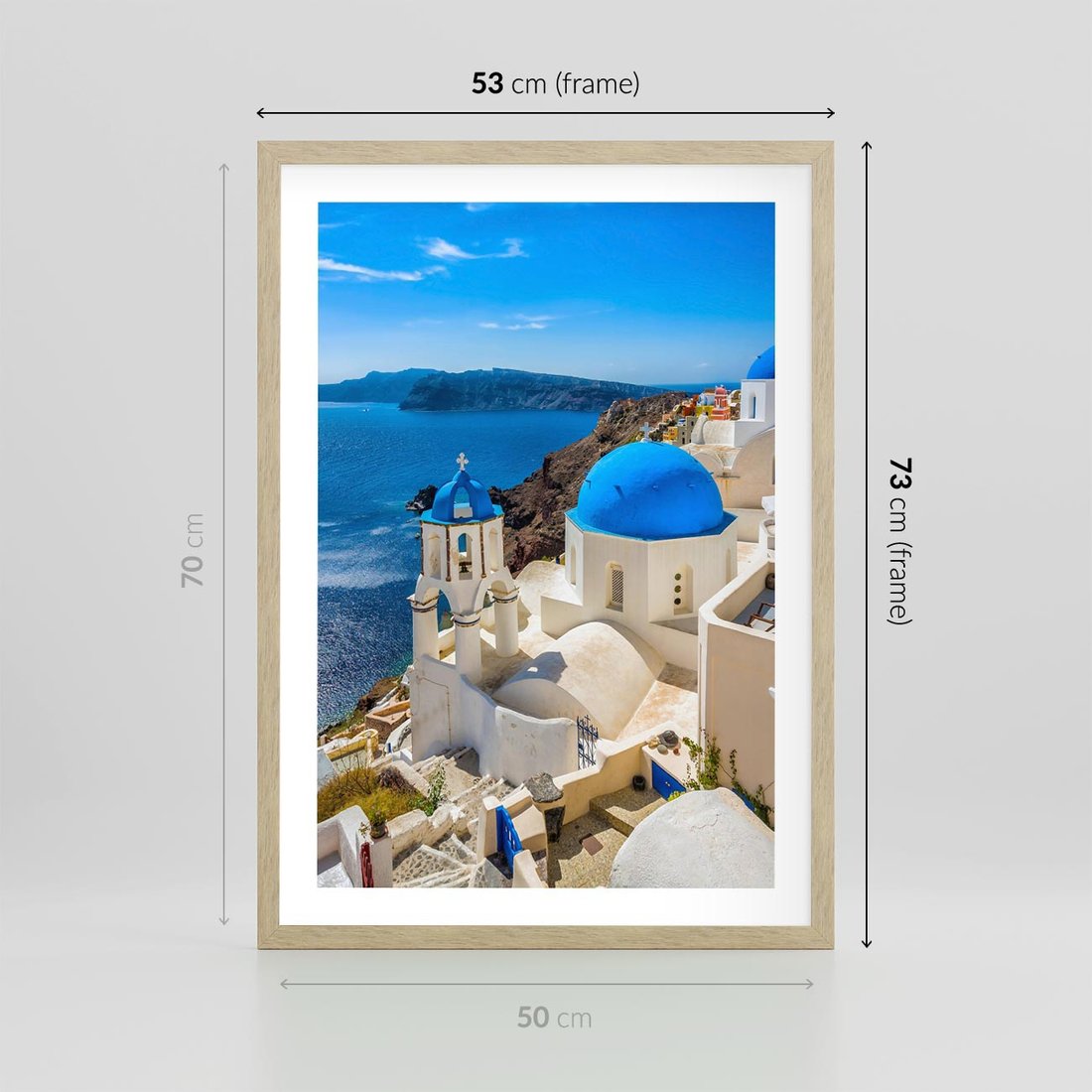 Plakat w ramie 50x70 - Urokliwy widok na Santorini - Santorini, widok - rama drewno