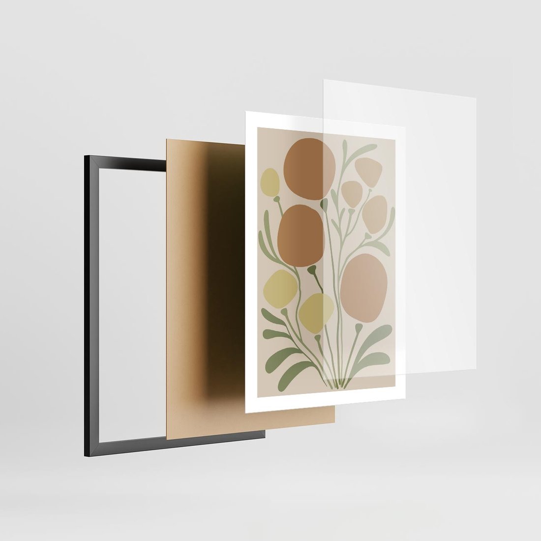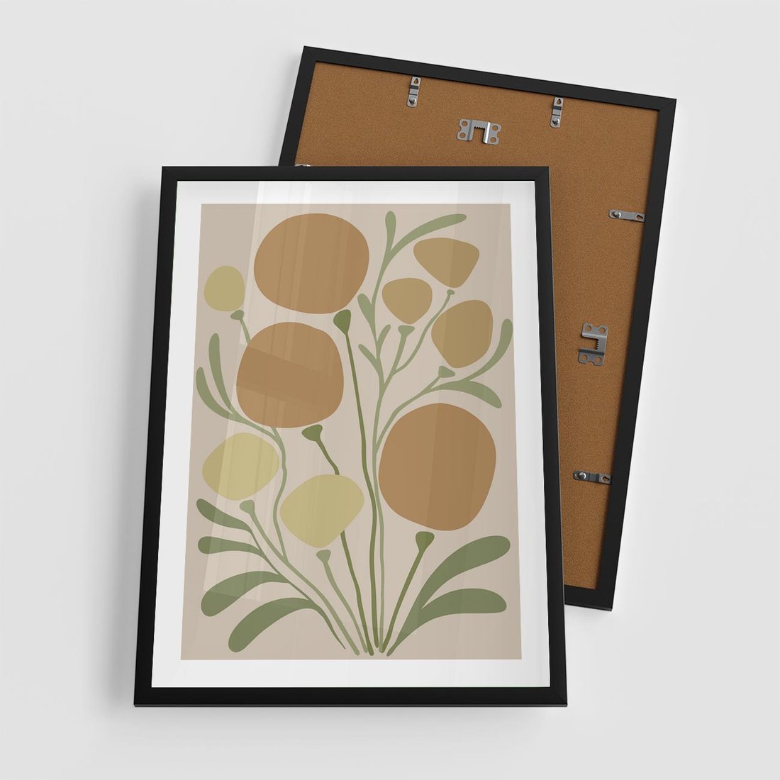 Ten nowoczesny plakat przedstawia abstrakcyjną roślinność w stylu modern art, używając delikatnych beżowych odcieni i subtelnych kolorów. To dzieło sztuki wnosi do Twojej przestrzeni spokój i nowoczesność, jednocześnie zachowując estetykę. Idealny wybór dla miłośników minimalistycznego designu z subtelnym akcentem natury.