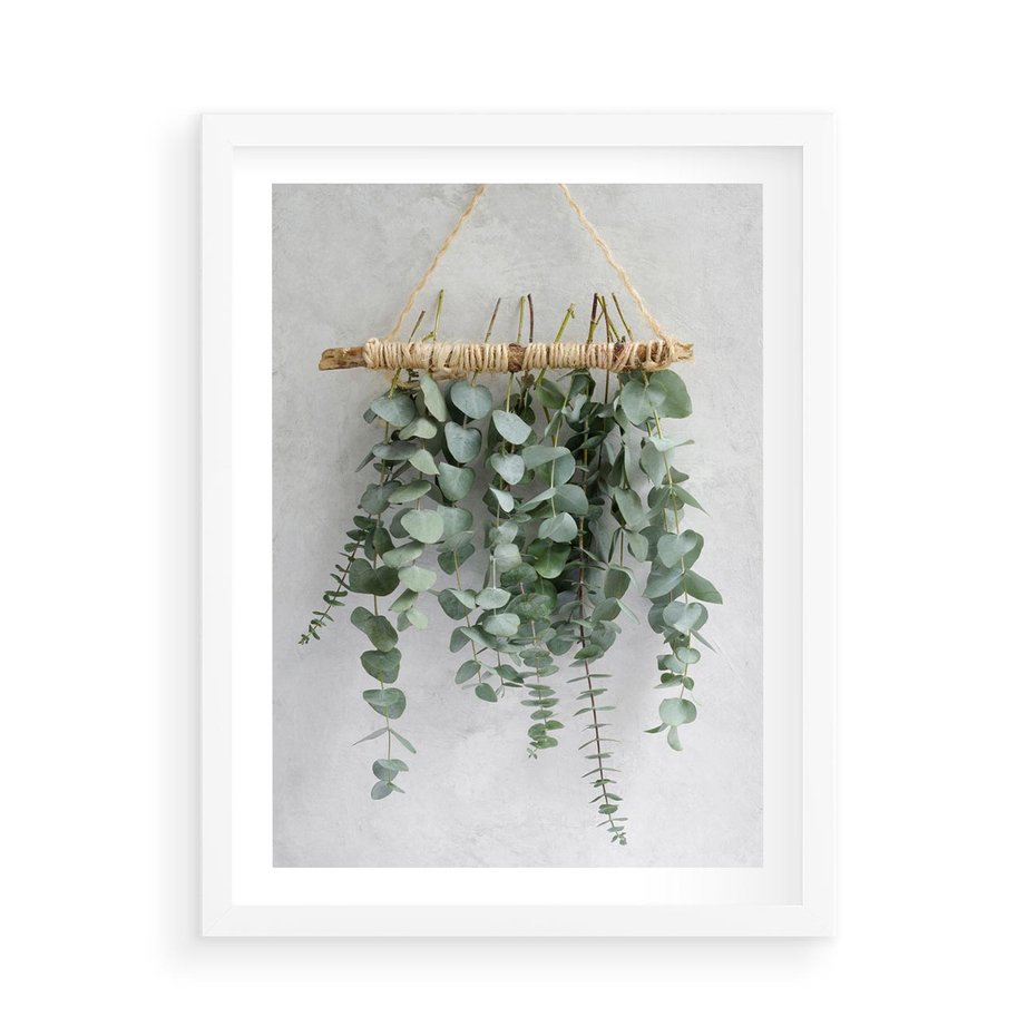 Plakat w ramie 50x70 - Uwodzicielska zieleń eukaliptusa - eukaliptus, zielone - rama biała