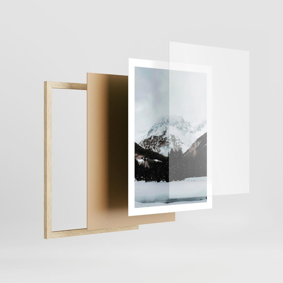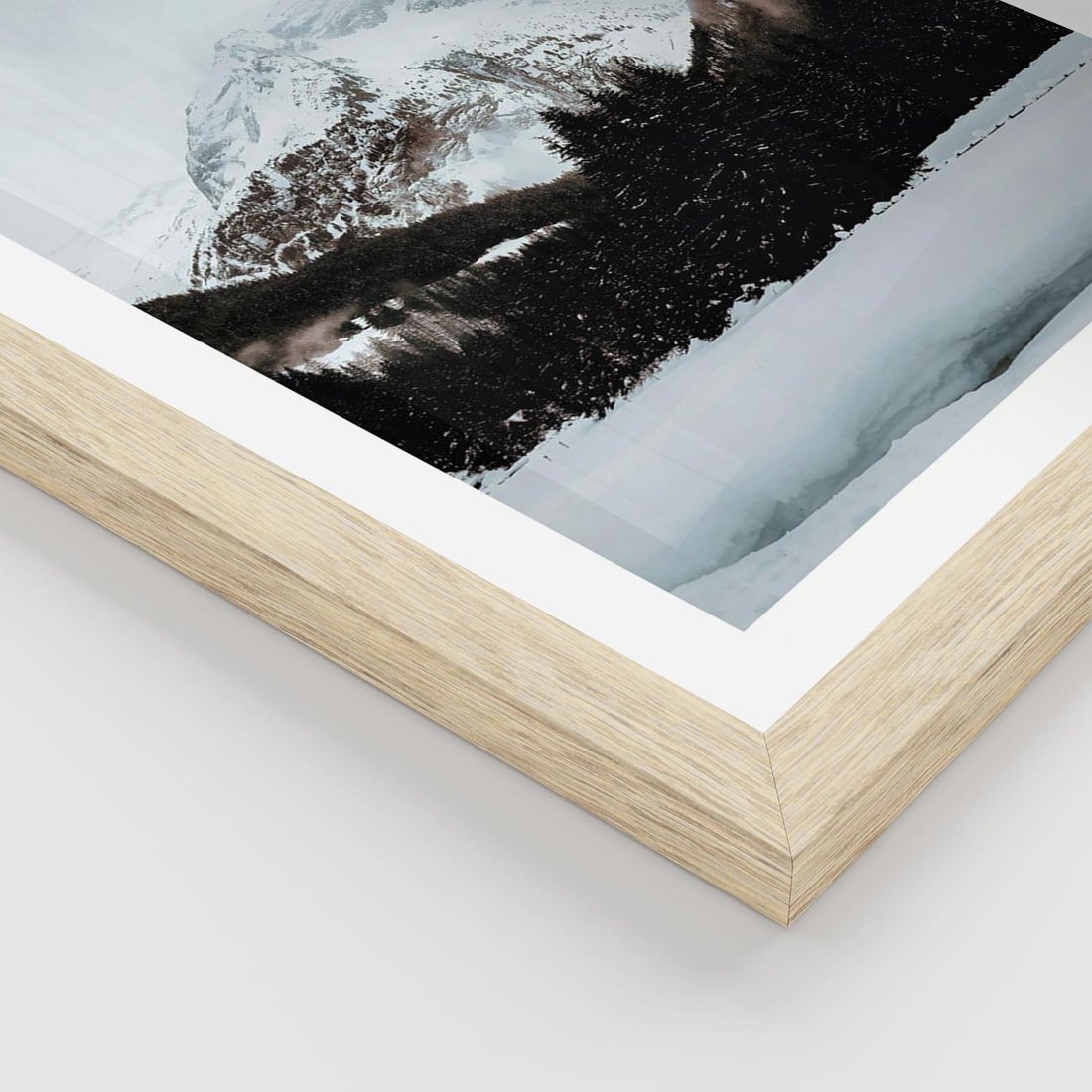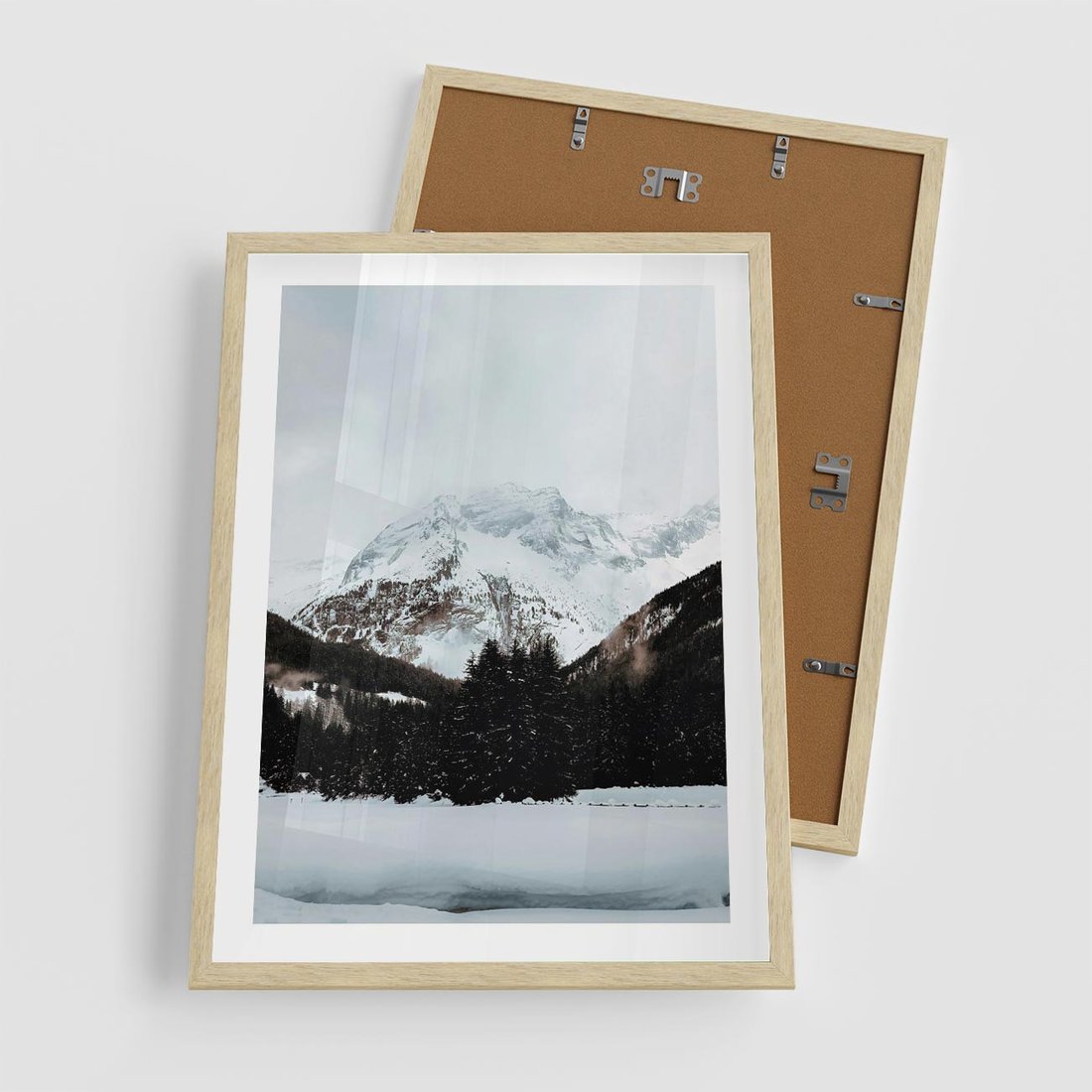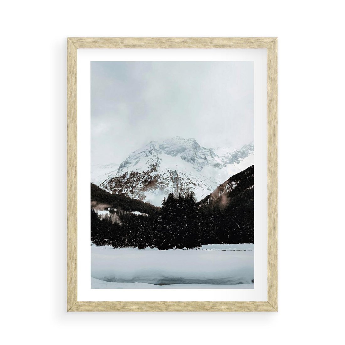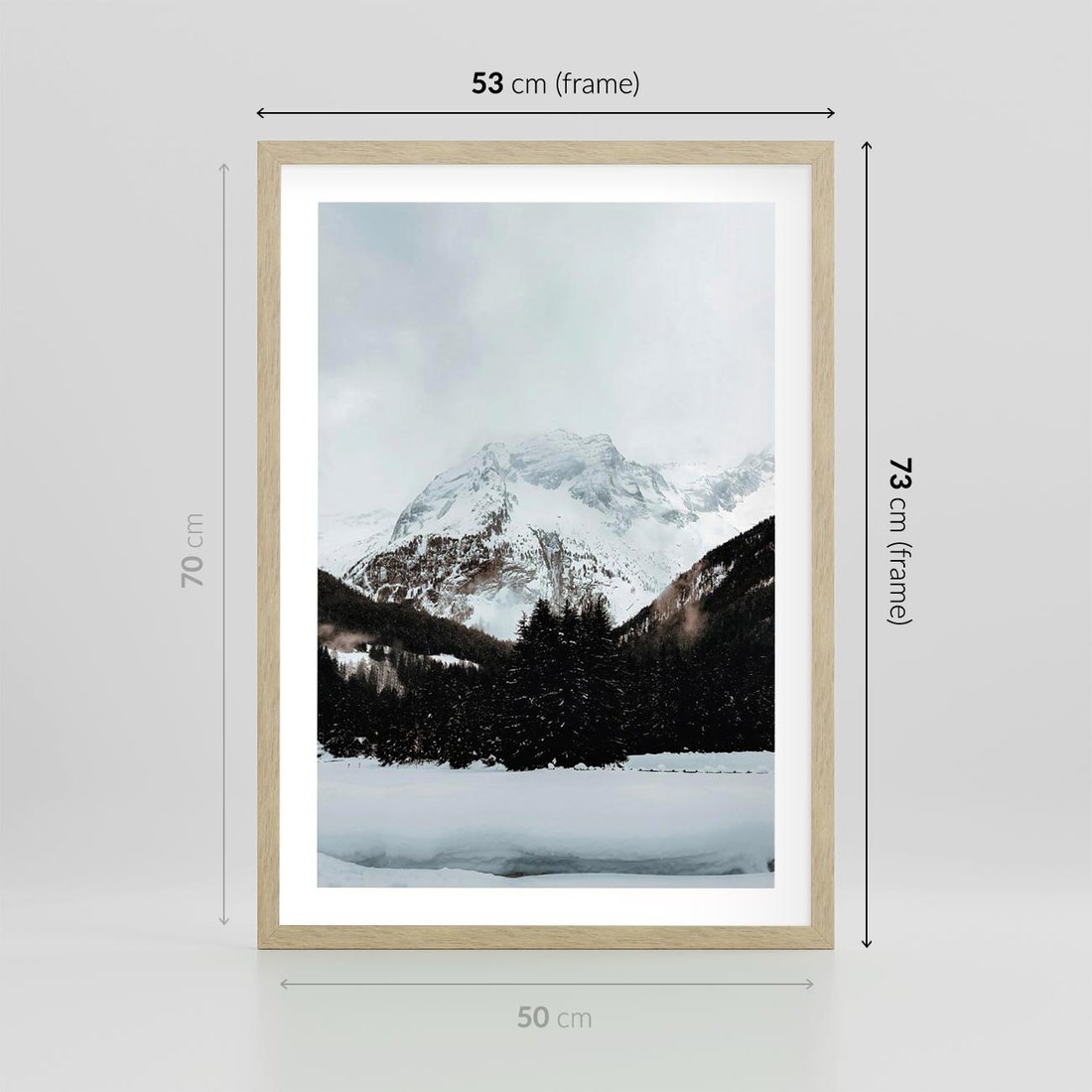 Plakat w ramie 50x70 - W Cieniu Śnieżnych Szczytów - górski krajobraz, zima - rama drewno